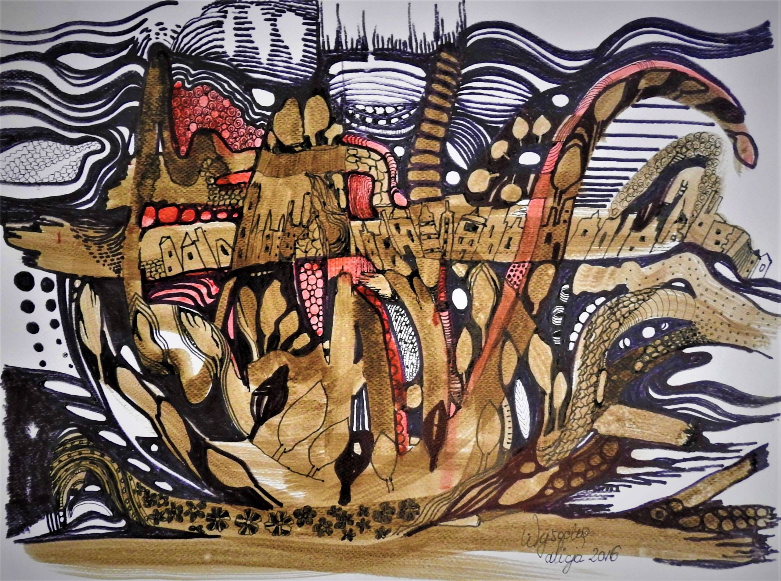 "Krajobraz w sepii" namalowany na papierze o gr.300 Canson techniką własną z wykorzystaniem ecoliny i tuszu. Oryginał, nie powielam swoich rysunków.