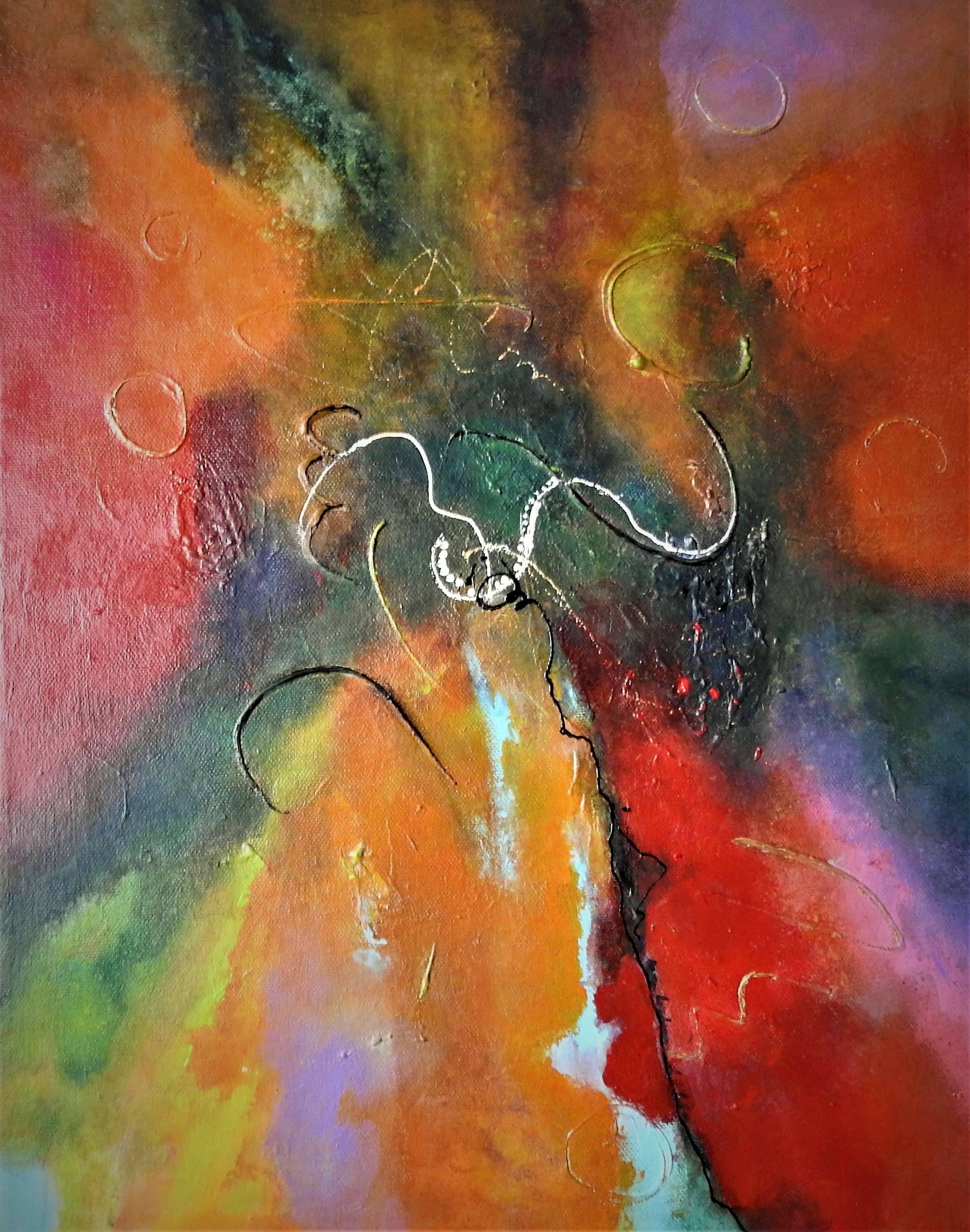 Obraz " Żar uczuć II " jest drugim obrazem cyklu " Uczucia ". Namalowany techniką akryl z wykorzystaniem faktury na bawełnianym płótnie 40 x 50. Boki zamalowane, zawerniksowany. Z tyłu obrazu opis / tytuł, autor, rok powstania /. Obraz w soczystych, gorących, energetycznych barwach rozjaśni każde wnętrze. Doskonały prezent.