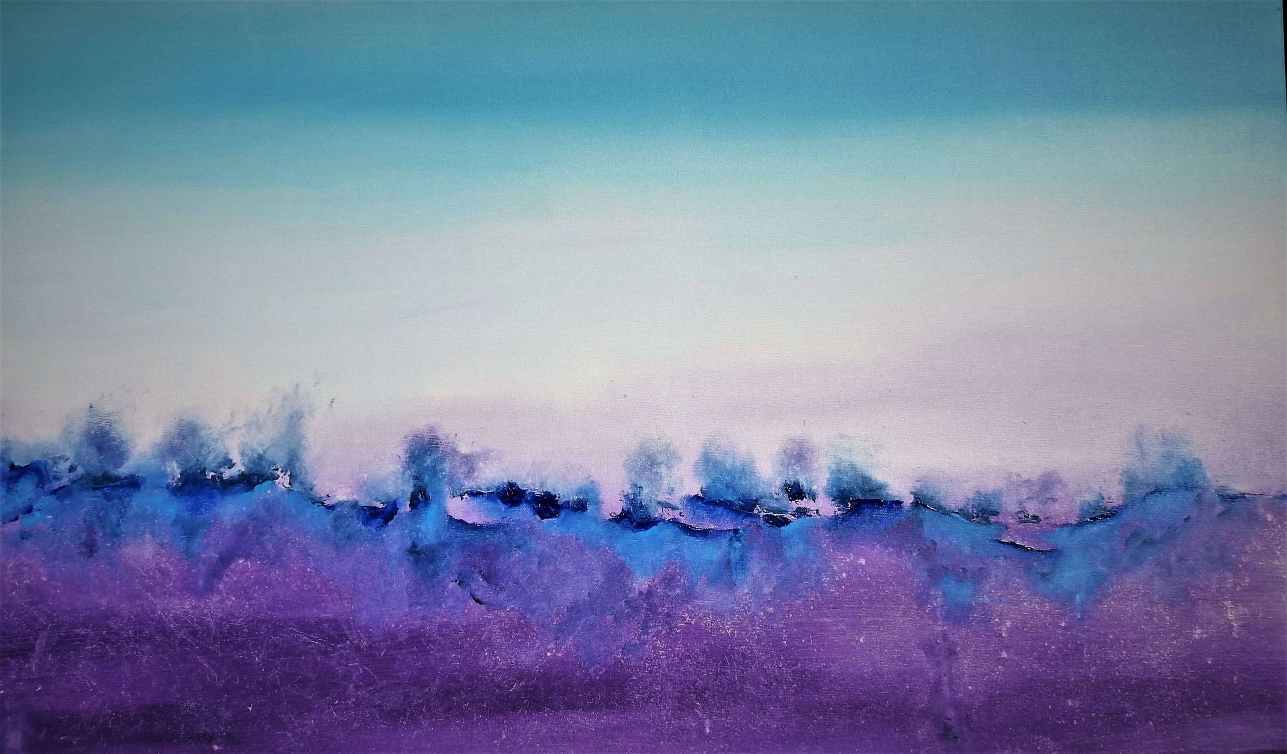 Obraz z pogranicza abstrakcji na bawełnianym płótnie 60 x 100, namalowany technika akryl.Boki starannie zamalowane, zbędna rama. Zabezpieczony damarowym werniksem.