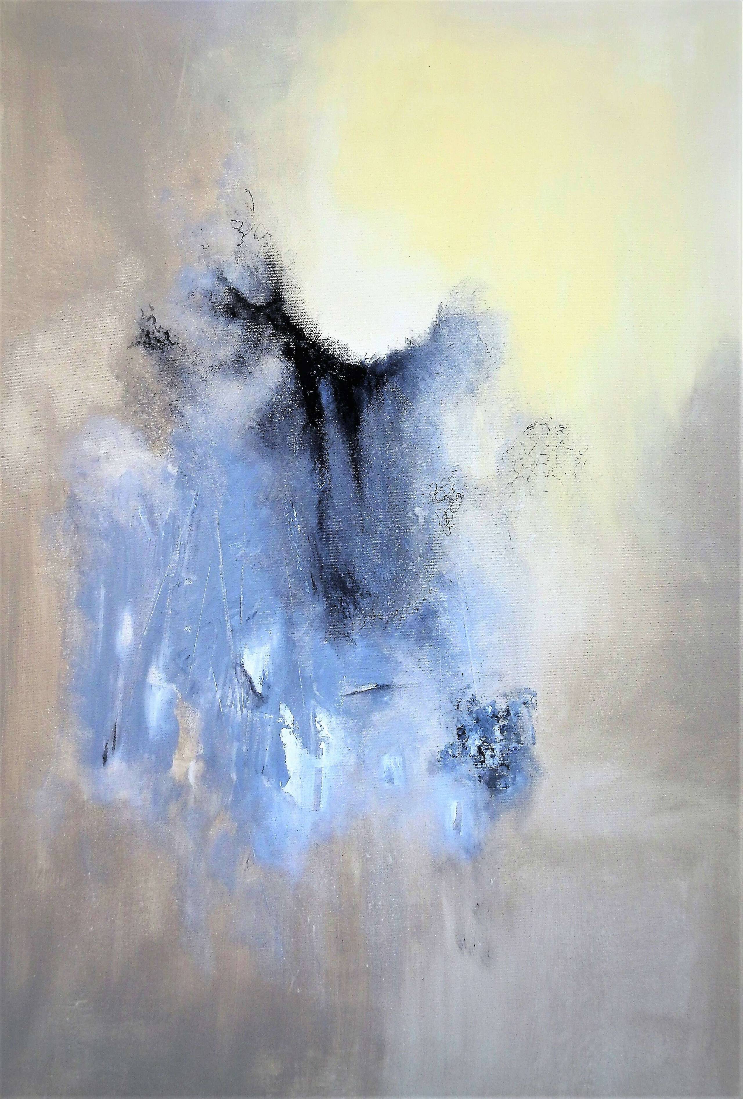 Blady świt rozpoczyna się wschodem Słońca, ukrytym jeszcze za horyzontem. Brzask i świeży wietrzyk uruchamia zmysły i tworzy nowe pomysły...W takim klimacie powstał obraz na płóciennym podobraziu 90 x 60, techniką akryl. Boki płótna są kontynuacją tła obrazu, zbędna więc rama, aczkolwiek oddziela dzieło od świata zewnętrznego, tworząc "bramę" do świata wyobraźni artysty. Sygnowany z tyłu obrazu pełnym opisem pracy.
