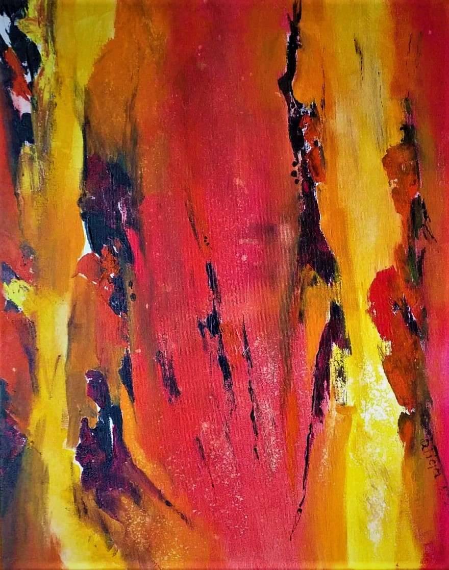 Bardzo energetyczny, rozgrzewający w kolorystyce obraz malowany techniką własną na włoskim płótnie i krośnie o grubości 3 cm. tzw. 3 D. Boki zamalowane, gotowy do powieszenia. Polecam do każdego współczesnego wnętrza.
