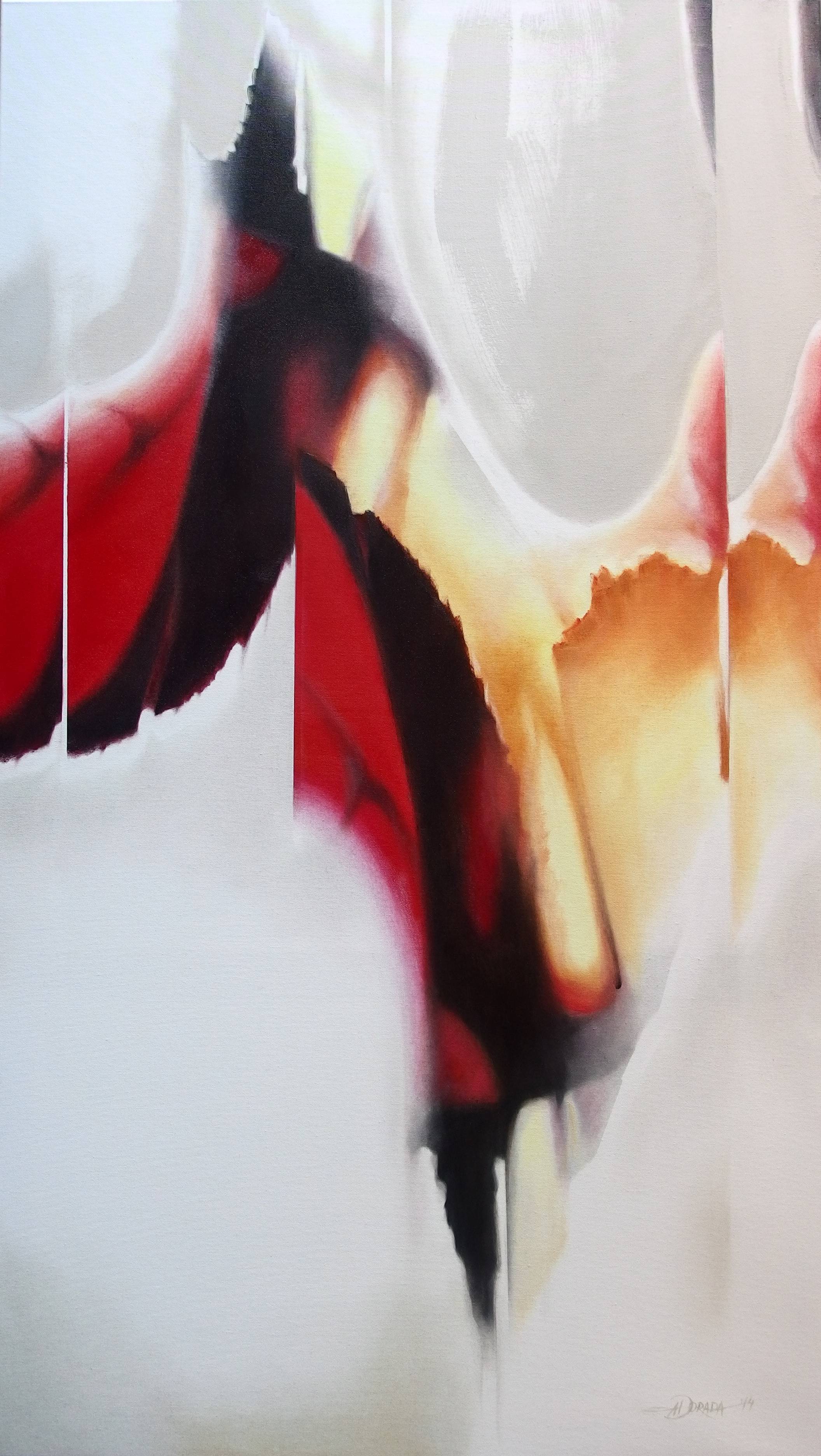 Na obrazie widzimy dynamiczne połączenie czerwieni i żółci, przeplatane subtelnymi, miękkimi odcieniami bieli. Kształty przypominają abstrakcyjne smugi dymu, ich forma jest płynna i delikatna. Kompozycja zaś tworzy wrażenie chaosu, ale zarazem harmonii, jakby było to starannie zaplanowane. Atmosfera jest nieco tajemnicza, z nutką niepokoju, ale też ciepła, dzięki użyciu intensywnych barw. Styl artysty przypomina nieco impresjonizm, z domieszką współczesnych technik. Rozmywane kontury i miękkie przejścia między kolorami przywodzą na myśl aura mistyczności. Całość zdaje się emanować tajemniczym spokojem, równocześnie wywołując uczucie niepewności. Dzieciak by powiedział: „To wygląda jak fajerwerki!”. I coś w tym jest. Może to skojarzenie z dynamicznością i intensywnością kolorów. Angielskie słowo „fluidity” idealnie opisuje ten obraz — płynność form nadaje mu unikalny charakter. Widok budzi refleksję nad chaosem i jego pięknem. Przyciąga oko, zmusza do myślenia o tym, co kryje się poza tą pozornie prostą wizualizacją.