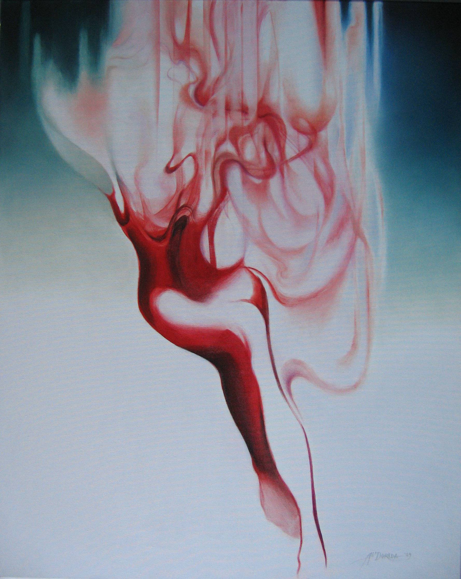 Na obrazie dominują ciche, ziemiste tony, które przechodzą w dynamiczne odcienie czerwieni. Kontrastujące kolory tworzą fascynujący spektakl dla oczu. Kształty przypominają gęsty dym bądź wijącą się chmurę, nadając całości nieuchwytną tajemniczość. Kompozycja zdaje się być starannie zaplanowana, ale jednocześnie pełna swobody — jakby artysta pozwalał farbie prowadzić się samodzielnie po płótnie. Atmosfera obrazu jest niemal hipnotyzująca. Połączenie delikatnych pociągnięć pędzla i intensywnych kolorów tworzy nastrój spokoju, ale też pewnego niepokoju. Ten artystyczny rollercoaster uczuć wywołuje u odbiorcy skrajne emocje. Czy obraz symbolizuje coś konkretnego? Może to interpretacja swobodnego ducha lub wręcz przeciwnie, wewnętrznego chaosu. A co jeśli to wszystko jest tylko przypadkiem, wynikającym z niespokojnej wyobraźni artysty? Technicznie obraz cechuje się imponującą płynnością przejść tonalnych (smooth transitions). Malarz wykorzystał techniki mieszane, by osiągnąć tę subtelną dynamikę. Dla mnie, to trochę jak patrzenie na wirujące w wodzie farby — nigdy nie wiesz, co się za chwilę wydarzy. „To coś jak wielki, zaczarowany miód!” — powiedziałby pewnie 7-latek pełen niewinnej fascynacji. Interpretacje mogą być różne, ale jedno jest pewne — to dzieło nie pozostawia obojętnym.