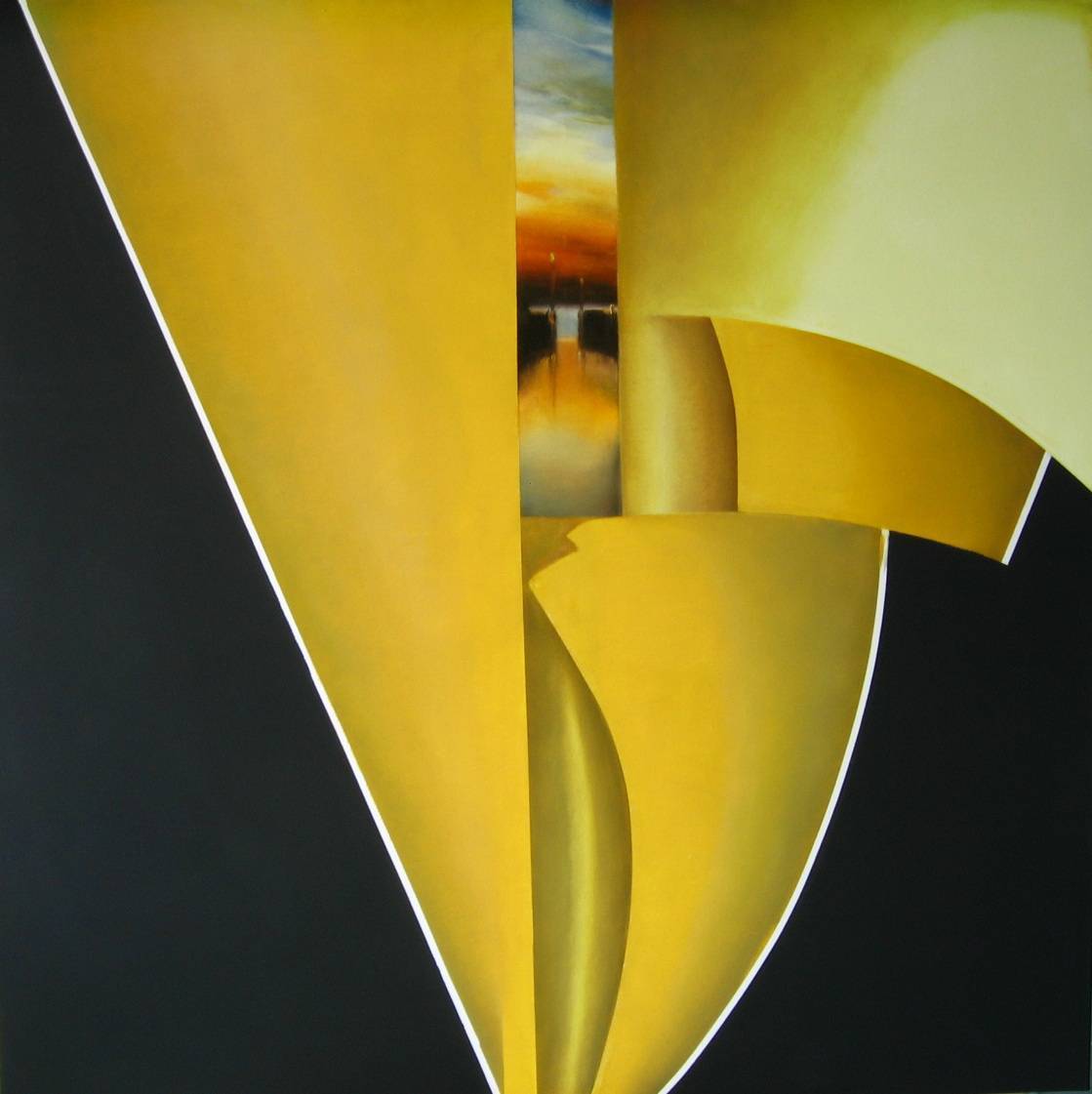Obraz emanuje niesamowitą głębią dzięki kontrastowi czerni i żółci. Dominujący żółty kształt przypomina zagięcie kartki papieru, które prowadzi do tajemniczego, świetlistego centrum. Światło wnikające w ciemności przypomina sunset, idealnie wpisując się w surrealistyczną kompozycję. Kolory są intensywne i żywe, przyciągając wzrok niczym magnes. Wygląda to jak fascynująca, magiczna brama do innego świata. Atmosfera jest pełna tajemnicy. Zastanawiasz się, co kryje się za tym pasmem światła? Może to inna rzeczywistość lub portal. Styl artystów jest unikalny, łączy abstrakcję z sugestywną interpretacją realności. Techniki użyte przez twórcę, takie jak ostre krawędzie i płynne przejścia pomiędzy kolorami, nadają obrazowi nowoczesnego sznytu. Wow, it's impressive! Dzieło to może wywoływać w nas uczucie niepokoju i ciekawości zarazem. Jak w bajkach, gdzie nie do końca wiadomo, co się za chwilę wydarzy. Może malarz chciał nam pokazać, że w życiu za każdym rogiem kryje się niespodzianka. "Czemu to wygląda jak rozsypany klocki?" pomyślałby dzieciak. Czuć energię, która popycha nas, by sięgnąć głębiej i odkryć, co leży poza zasięgiem wzroku.
