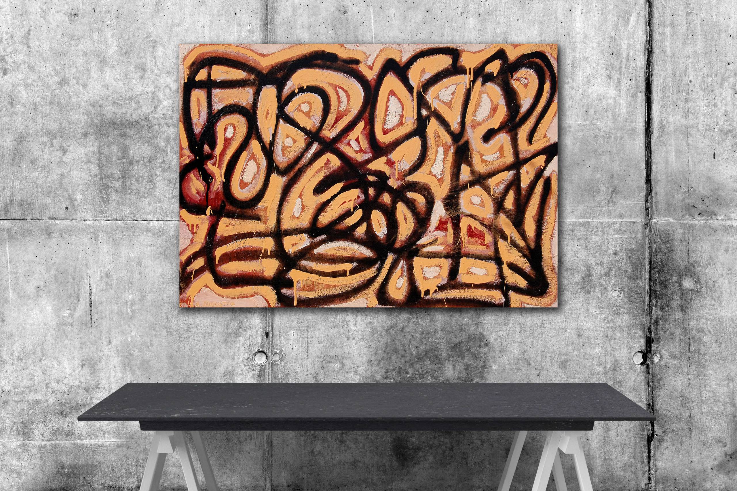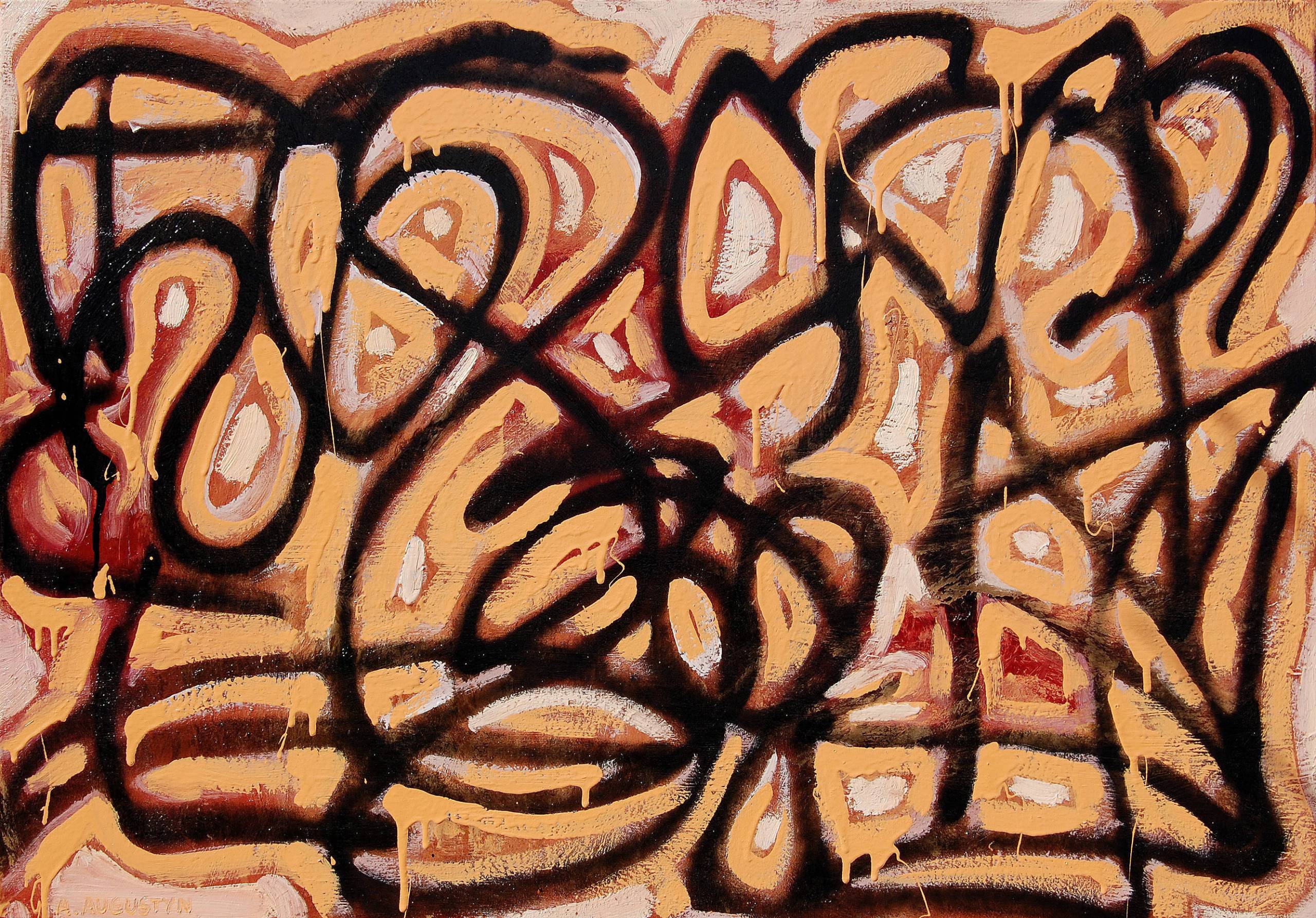 Abstrakcyjny, nowoczesny obraz namalowany w technice mieszanej (akryl, emalia, olej) na wysokiej jakości bawełnianym podobraziu. Sygnowany w lewym, dolnym rogu: A. Augustyn. Oprawa nie jest wymagana- brzegi obrazu są estetycznie zamalowane. Praca wyróżnia się ciekawą formą, delikatną fakturą i przyjemną dla oka monochromatyczną kolorystyką. Obraz prezentowano na indywidualnej wystawie zatytułowanej: Abstrakcje (galeria ZPAP w Częstochowie).