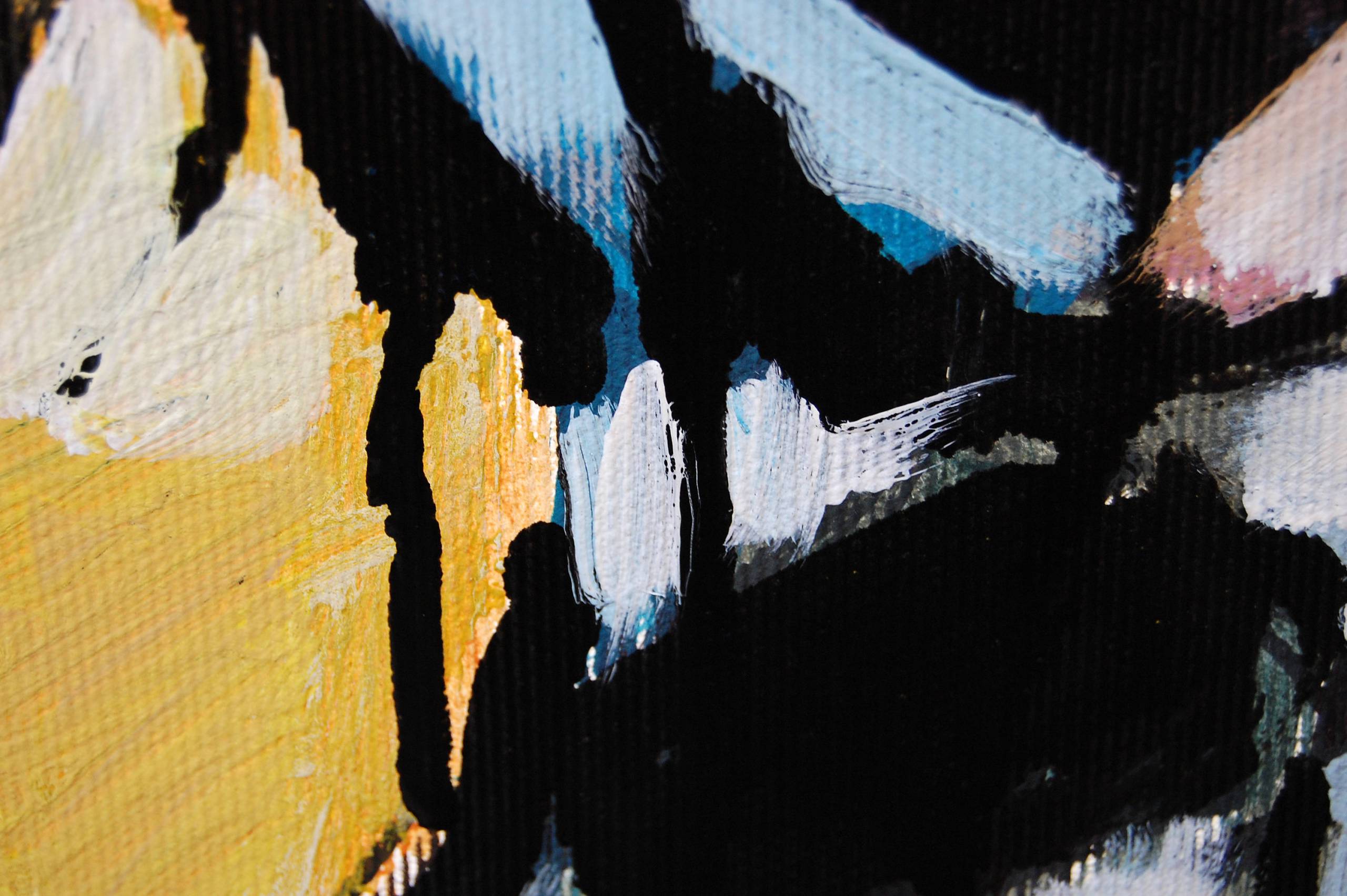 Obraz namalowany w technice mieszanej (akryl, farba olejno-ftalowa) na wysokiej jakości, bawełnianym podobraziu (włoskie płótno o gramaturze 320 g, sosnowe krosna: 20/40 mm). Oprawa nie jest konieczna; krawędzie boczne są estetycznie zamalowane. Sygnowany w prawym, dolnym rogu: A. Augustyn. Rok wykonania: 2017. Obraz doskonale ożywi każde wnętrze. Sprawdzi się w wielu aranżacjach, szczególnie interesująco będzie prezentować się w towarzystwie: bieli, szarości i czerni. Może okazać się wyśmienitym pomysłem na oryginalny prezent. Przypadnie do gustu miłośnikom barwnych, nowoczesnych kompozycji. | Obraz sprzedany; znajduje się w rękach prywatnych (Wielka Brytania).