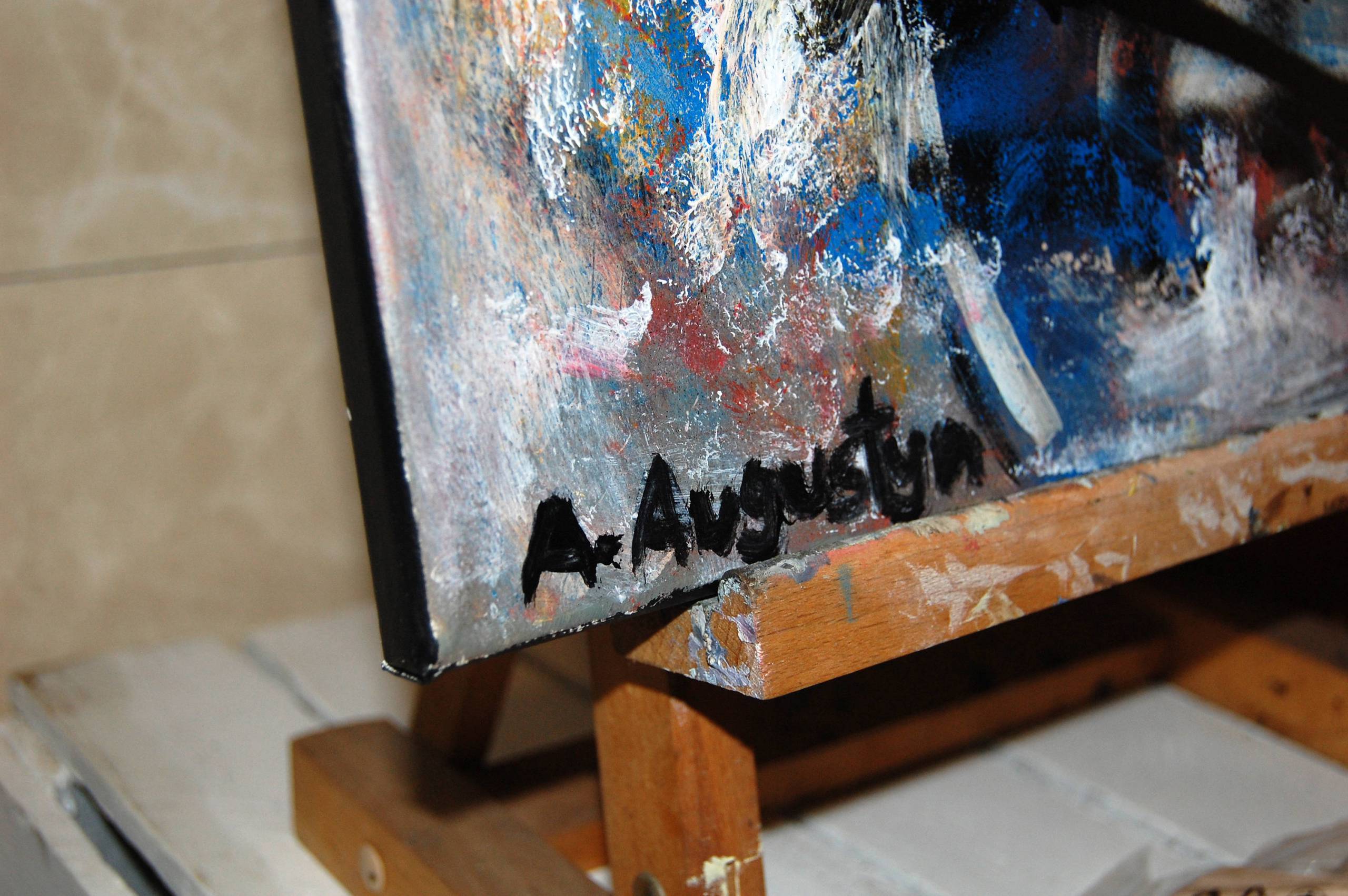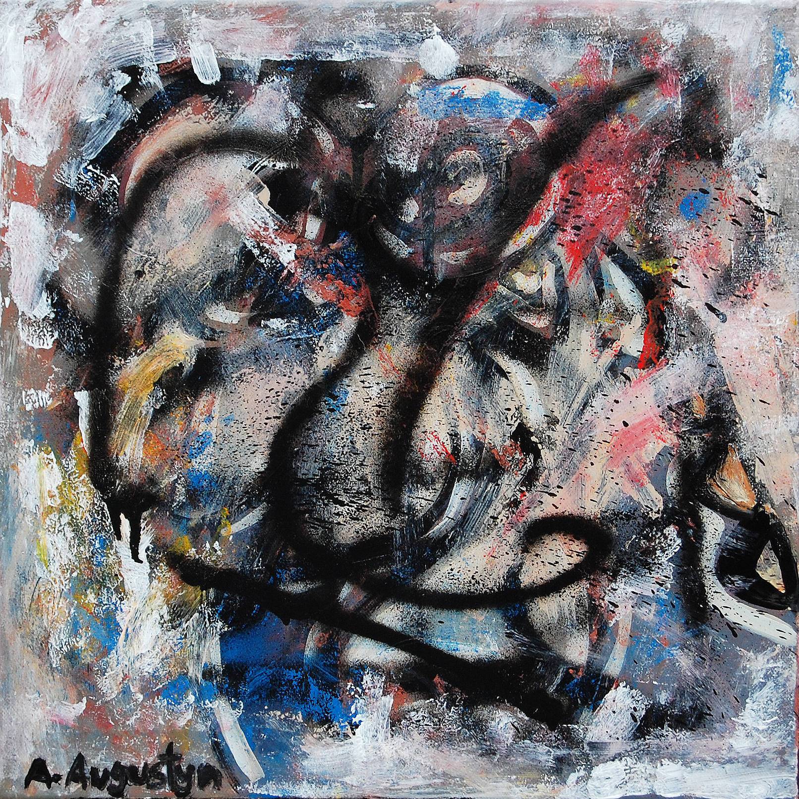 Abstrakcja namalowana w technice mieszanej (farby akrylowe, emalia, spray) na lekkim, bawełnianym podobraziu. Obraz nie wymaga oprawy - krawędzie boczne płótna są estetycznie zamalowane czarną farbą. Sygnowany w lewym, dolnym rogu: A. Augustyn. Opisany na odwrocie. Praca powstała w styczniu 2018 roku. Jest znakomitą propozycją dla szukających dzieł o ekspresyjnej, pozbawionej figuracji formie. Na szczególną uwagę w tym obrazie zasługuje zróżnicowany sposób kładzenia farby, który podkreśla dynamizm układu kompozycyjnego. "Figura serpentinata" była prezentowana na wystawie indywidualnej w częstochowskiej galerii ZPAP (2019 r.).