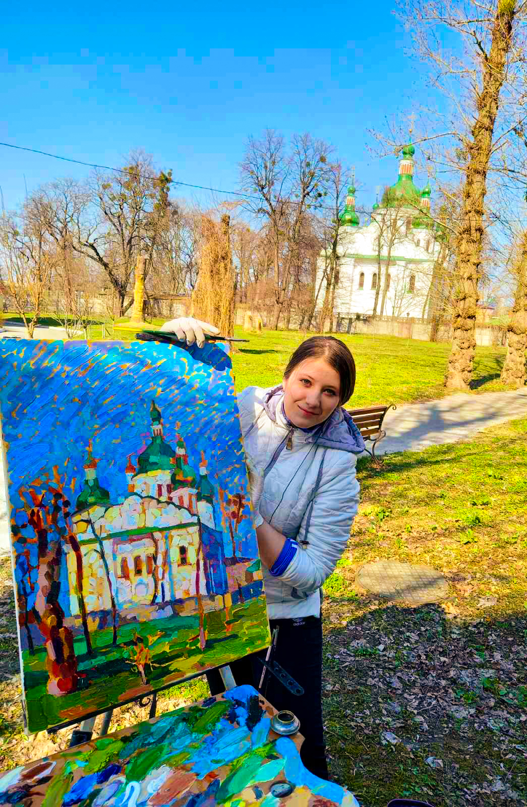 Namalowałem ten obraz w plenerze do katalogu międzynarodowego konkursu „Najlepszy artysta” i wystawy „Sofia plein air 2021”, gdzie został zaprezentowany po raz pierwszy. Sama świątynia jest wyjątkowa i mam nadzieję, że poczujecie tę atmosferę.Klasztor św. Cyryla). Klasztor założony przez wielkiego księcia Wsiewołoda Ołhowycza około 1140 roku na obrzeżach średniowiecznego Kijowa na Ukrainie.