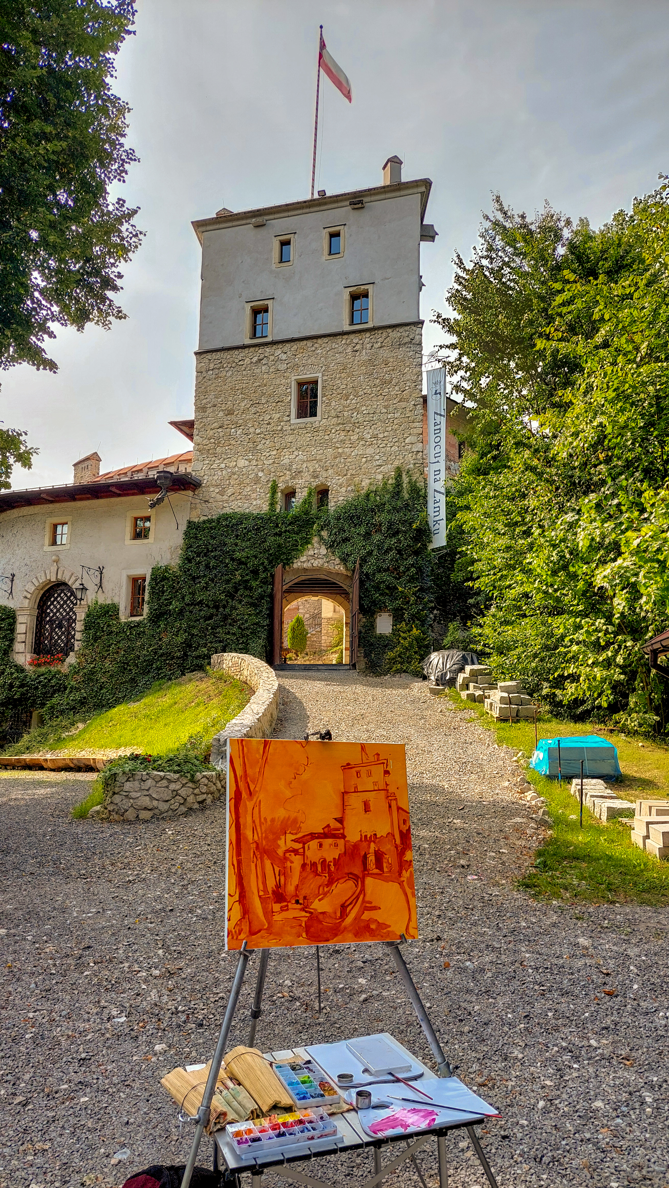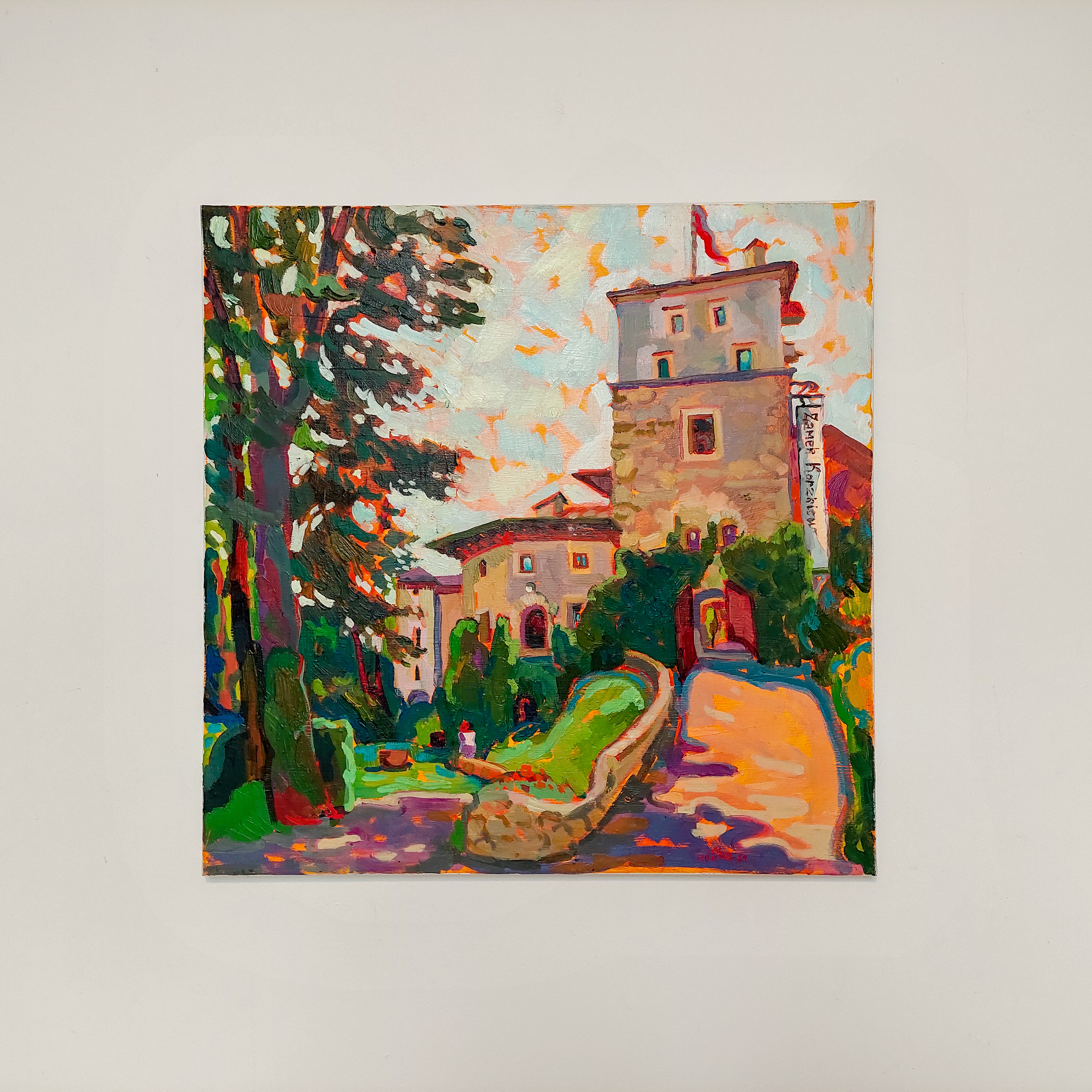 Historyczny zamek w Korzkwi, istniejący od 1352 roku i niegdyś tętniący życiem podczas barwnych uczt oraz turniejów rycerskich, dziś zaprasza wszystkich w swoje XIV‑wieczne mury. Położony jest na północ od krakowskiego Starego Miasta, zaledwie 13 km od Rynku Głównego. Zamek wznosi się na wzgórzu otoczonym lasem oraz parkiem założonym w 1820 roku, rozciągającym się w dolinie między zalesionym zboczem a rzeką Korzkiewką. To niezwykłe miejsce przyciąga historią, atmosferą i nutą tajemnicy. Obraz został namalowany w stylu impresjonizmu, w plenerze, z użyciem najwyższej jakości farb.