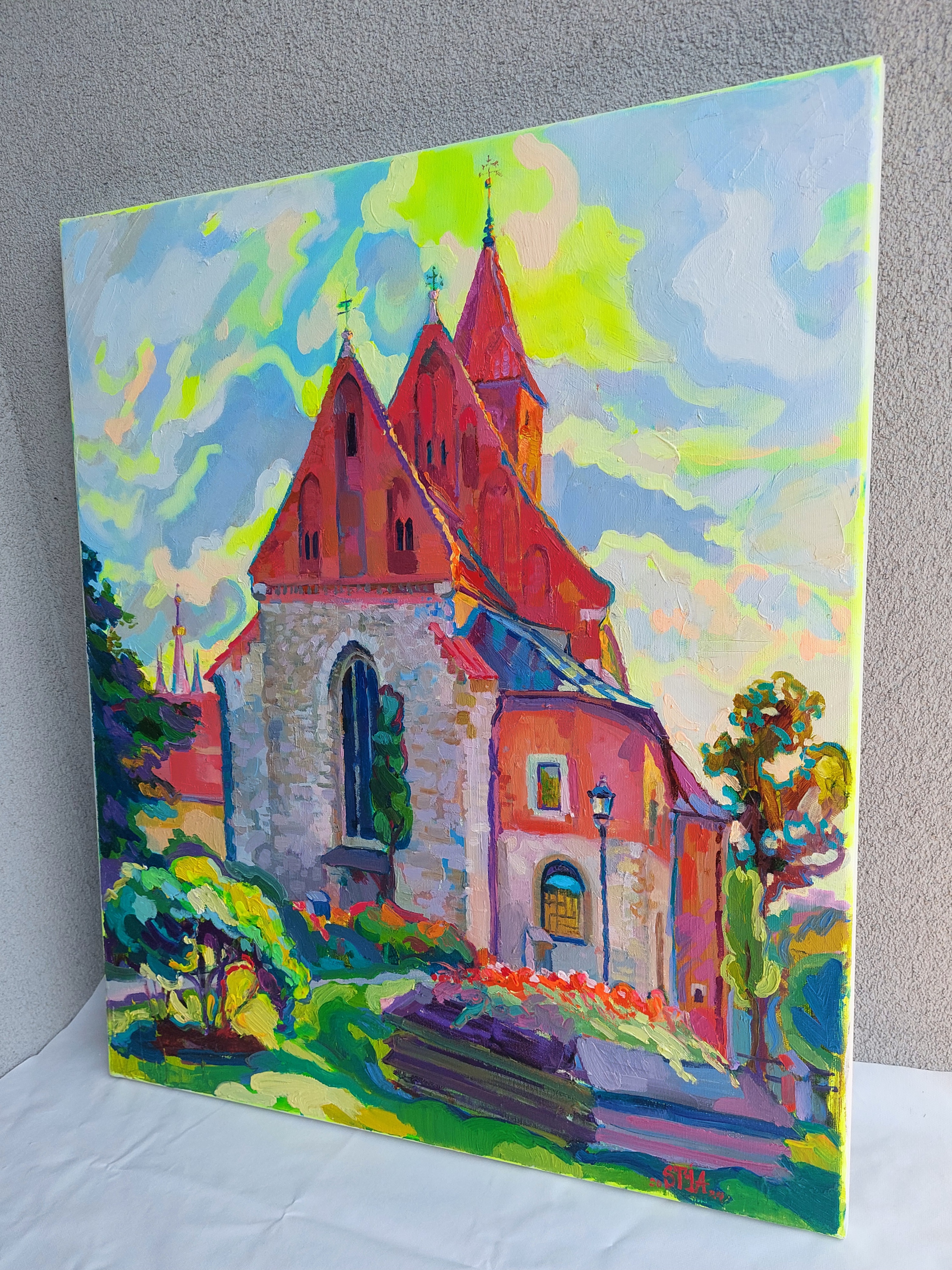 To zachwycające malarstwo plenerowe, utrzymane w ekspresyjnym, impresjonistycznym stylu, oddaje żywy urok starego polskiego kościoła ukrytego w sercu Krakowa. Dwie charakterystyczne wieże wznoszą się ku niebu, podkreślając zarówno architektoniczną majestatyczność świątyni, jak i jej historyczne znaczenie. Malowany bezpośrednio z natury, obraz emanuje autentyczną, pulsującą atmosferą miejsca. Dzieło doskonale łączy ciepło architektonicznych detali kościoła z energią tętniącego życiem krakowskiego pejzażu miejskiego, dzięki czemu stanowi idealne uzupełnienie każdej kolekcji. Niezależnie od tego, czy przyciąga Cię jego historyczny rezonans, kunszt malarski czy kulturowy charakter, obraz oferuje ponadczasowe spojrzenie na piękno Krakowa.