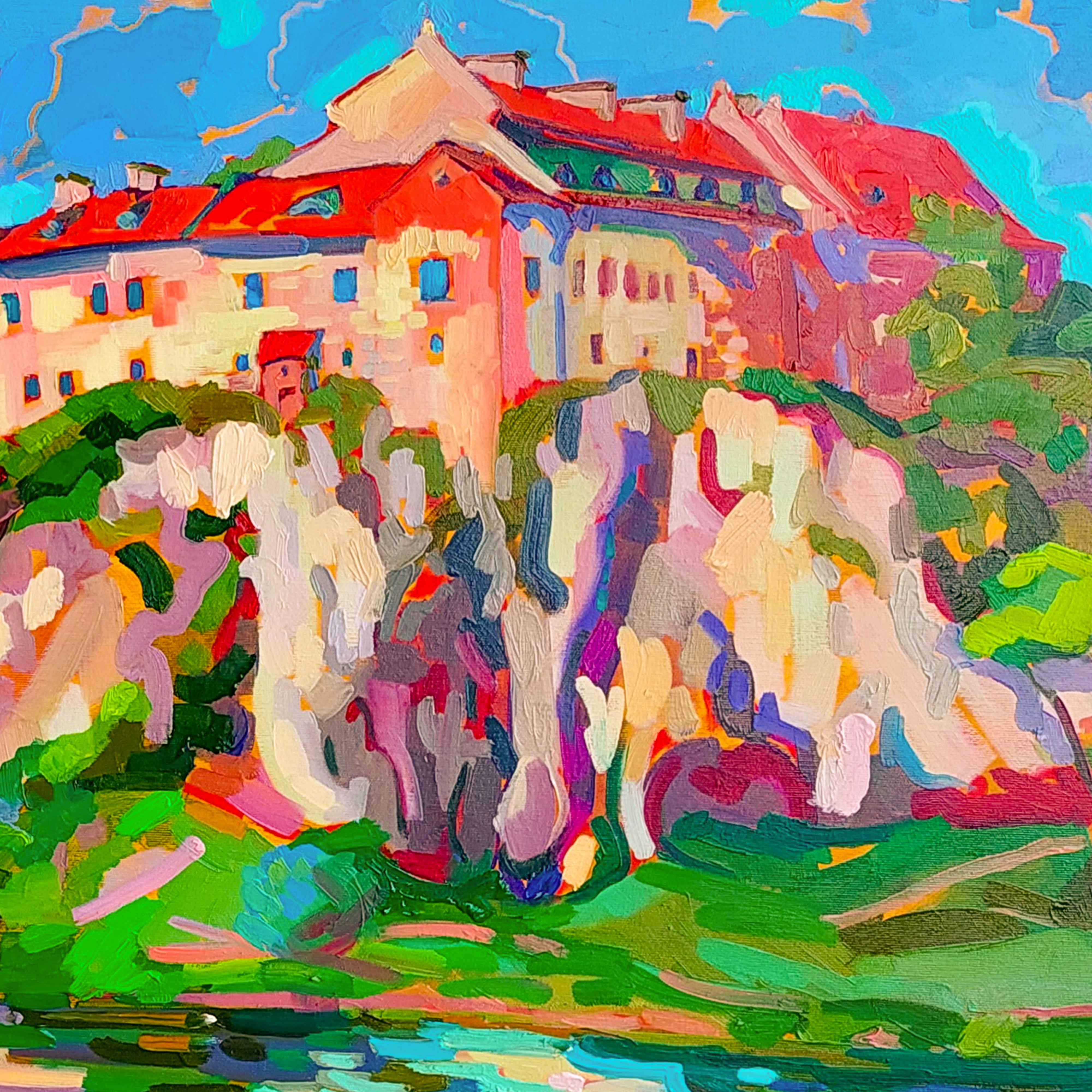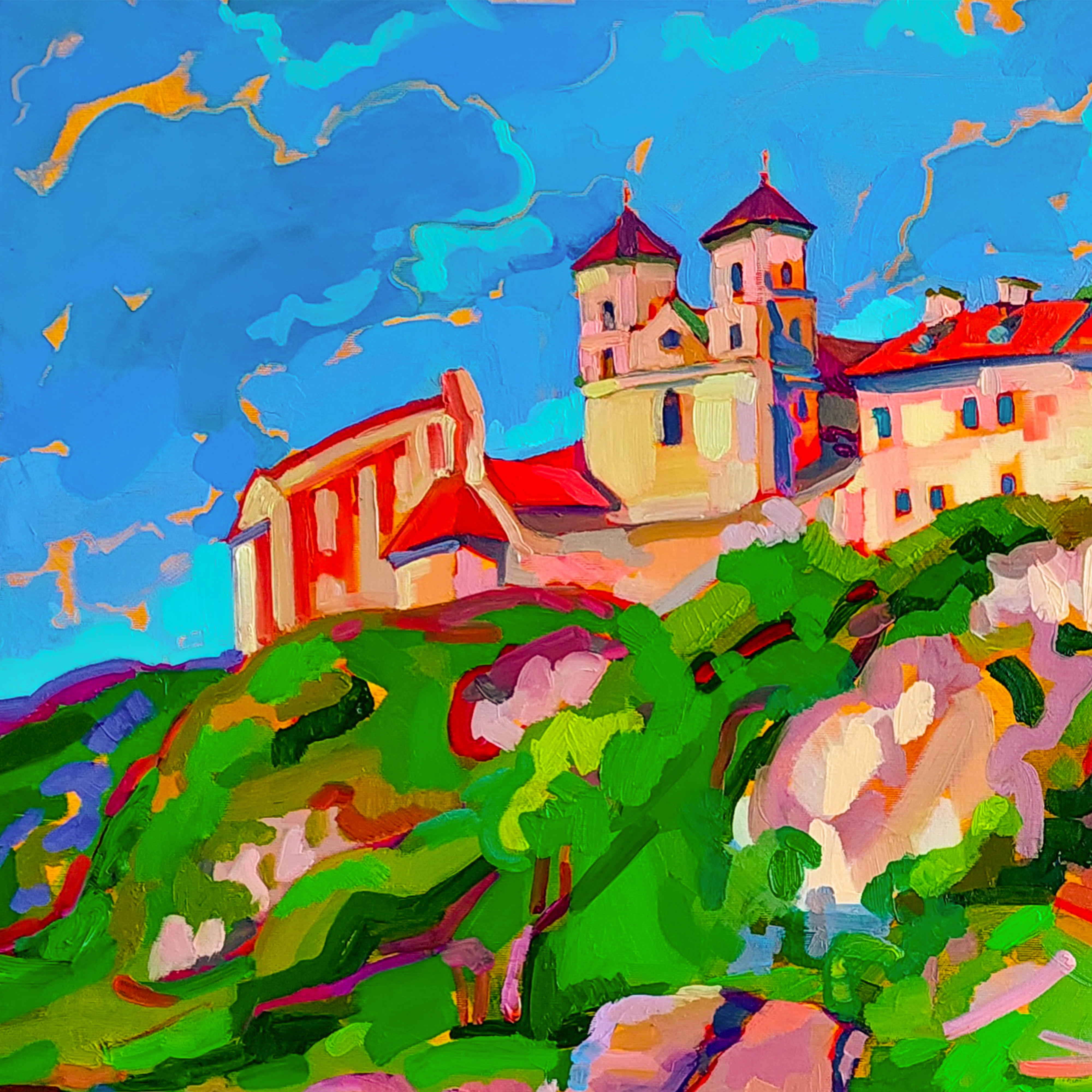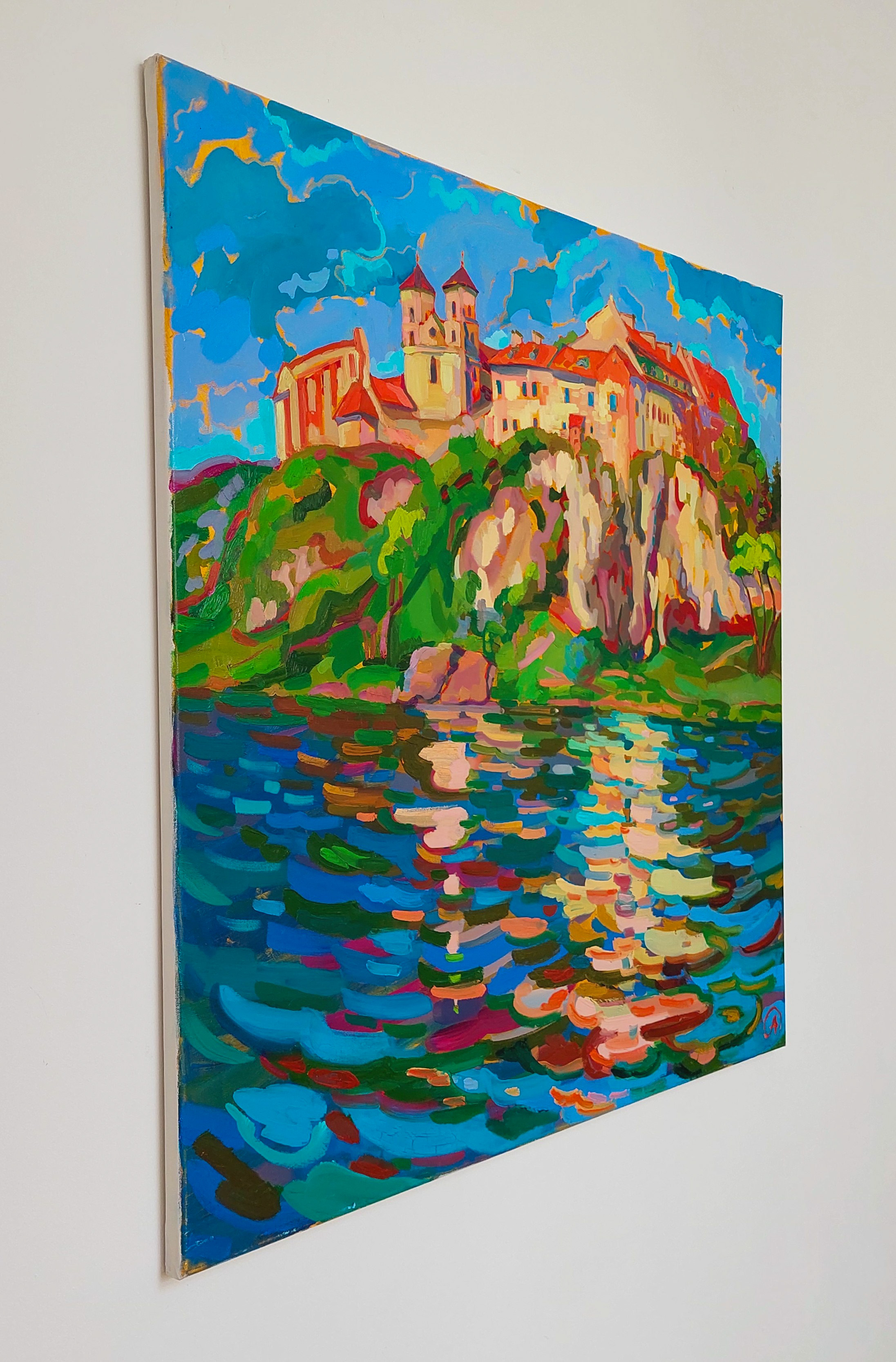 „Opactwo Benedyktyńskie” to drugi obraz z nastrojowej serii stworzonej w okolicach Krakowa, po spokojnej, przeciwnej stronie Wisły. To wyjątkowe dzieło akrylowe podkreśla majestatyczne piękno dawnej architektury, ukazując historyczne Opactwo Benedyktynów, które wznosi się malowniczo na skalistym wzgórzu. Opactwo, z charakterystycznymi czerwonymi dachami i bliźniaczymi wieżami, stanowi symbol elegancji i historii, zanurzony w harmonijnej grze intensywnych barw i światła. Spokojne odbicie w tafli rzeki potęguje urok kompozycji i wprowadza widza w niemal oniryczny, wyciszony krajobraz. To dzieło emanuje wyjątkowym połączeniem dziedzictwa kulturowego i artystycznej harmonii, dzięki czemu doskonale wzbogaci każdą kolekcję. Zarówno miłośnicy sztuki, jak i kolekcjonerzy unikatowych pejzaży architektonicznych odnajdą w „Opactwo Benedyktyńskie” inspirację i zachwyt.