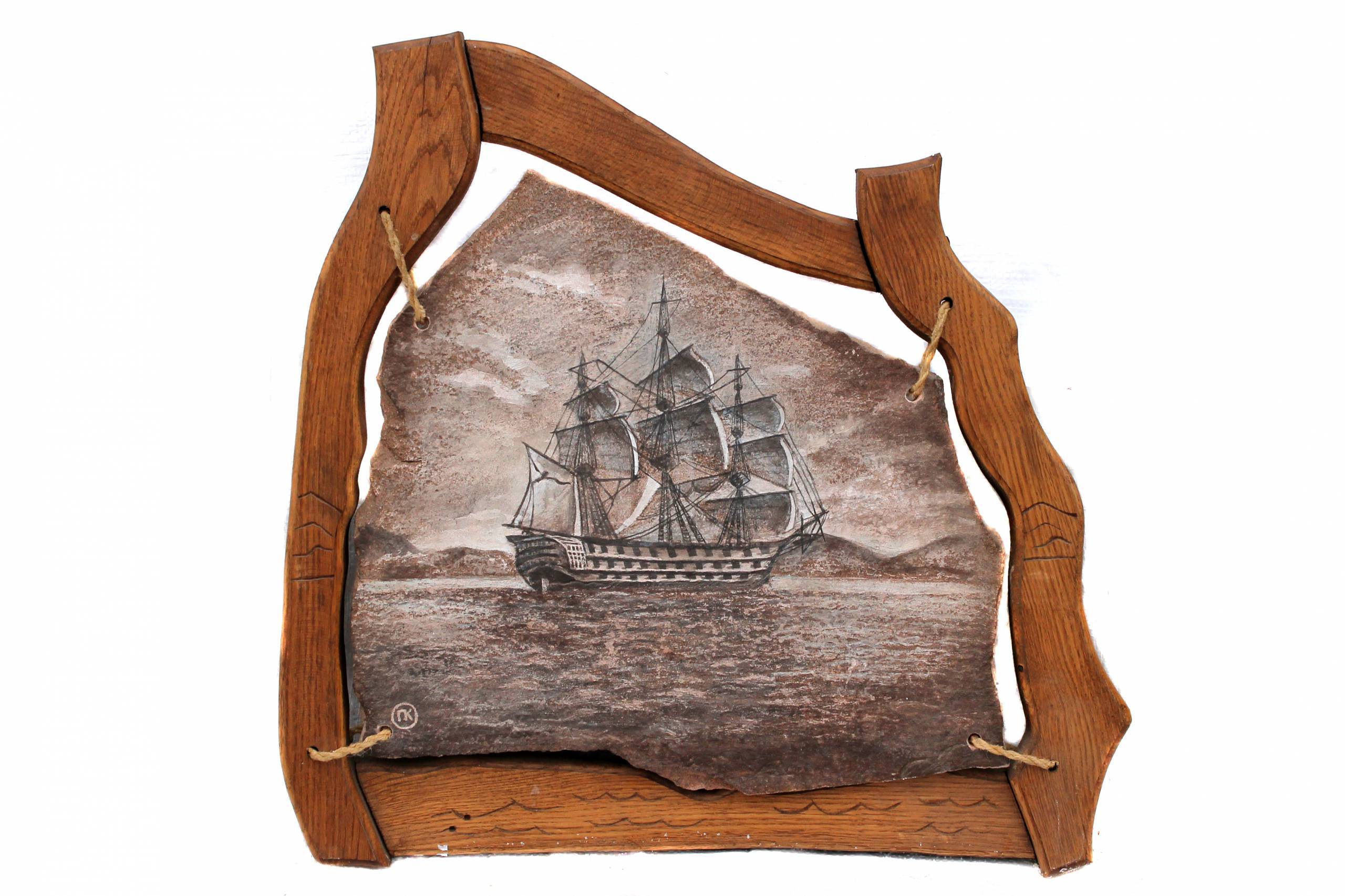 Royal ship on raid. Paysage is made on sandstone. Frame is made from oak.