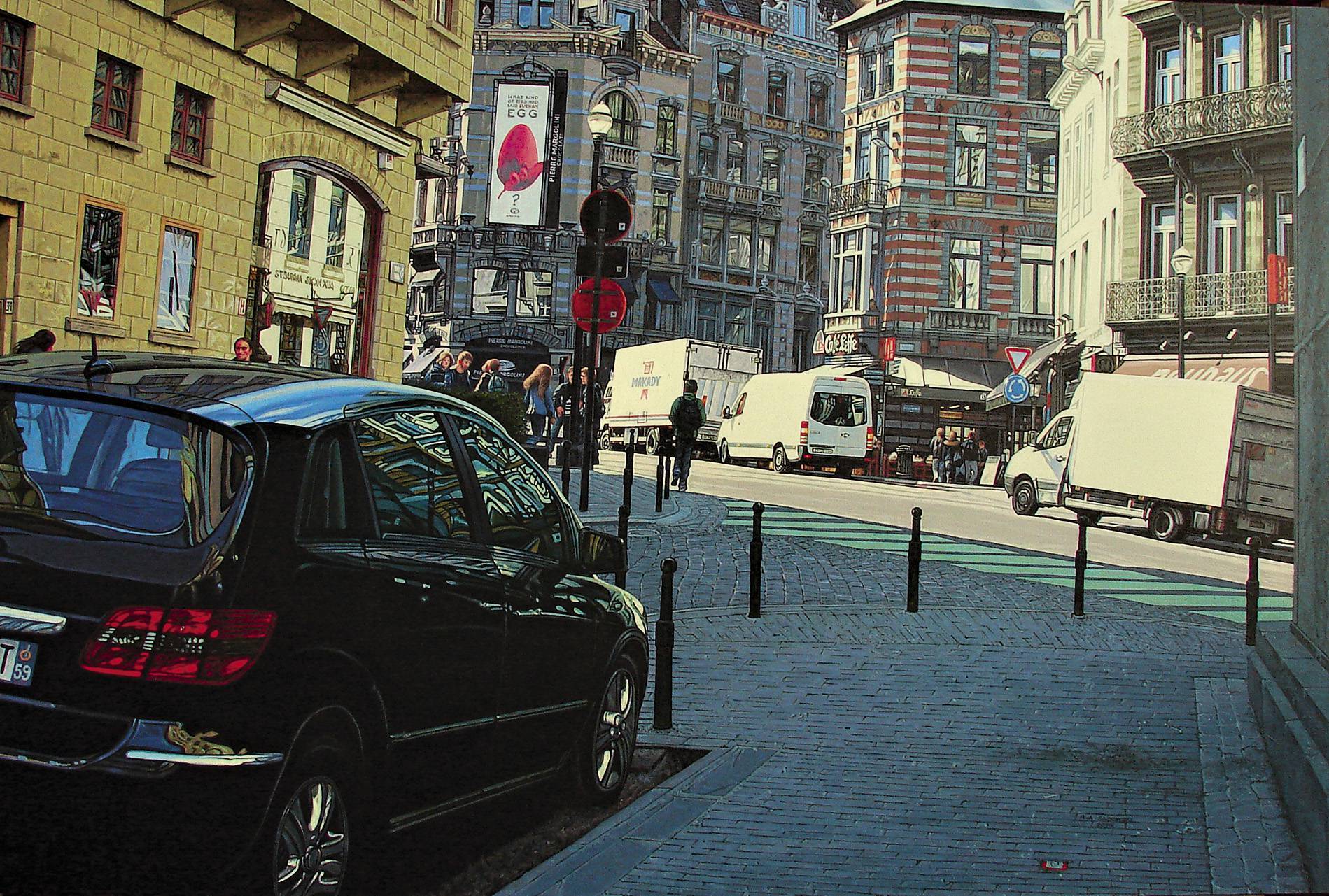 Andrzej A Sadowski - Bruksela-Boulevard de l`Emperer-z czarnym Mercedesem B klasse
