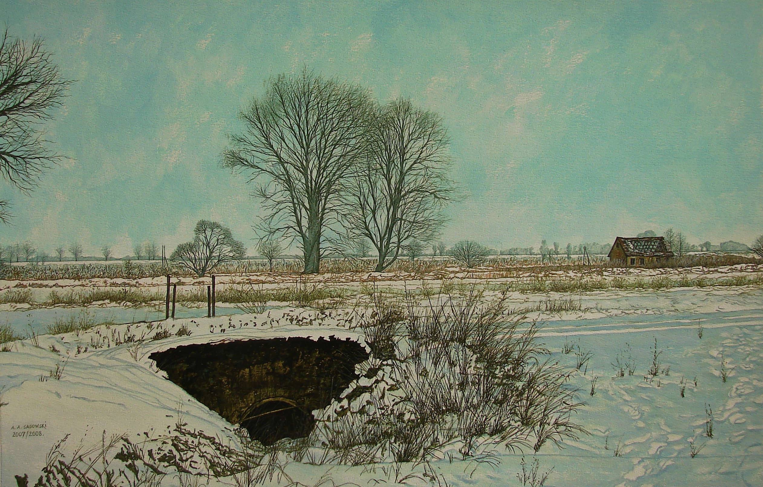 Andrzej A Sadowski - Puczniew - pejzaż zimowy z mostkiem