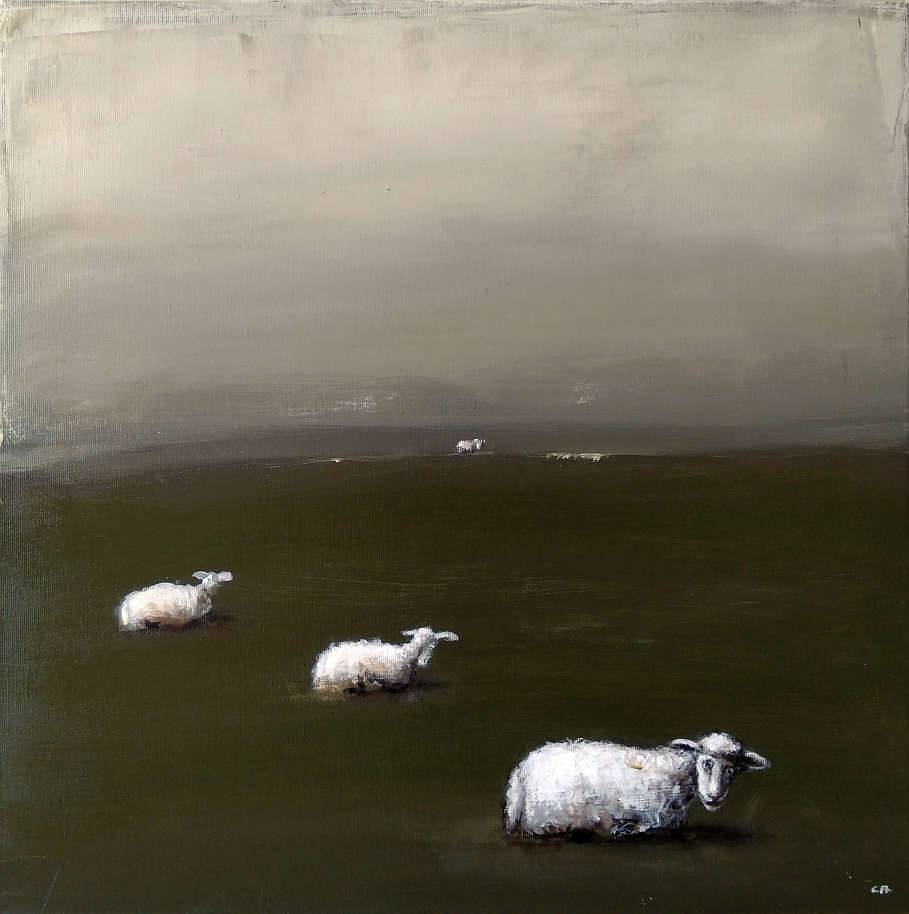 Na obrazie widzimy kilka owiec, które leniwie pasą się na zielonej łące. Tło jest niezwykle minimalistyczne, w odcieniach szarości i zieleni, co dodaje pracy nostalgicznego i spokojnego charakteru. Chmury na horyzoncie delikatnie rozmazane, jakby zanurzone w mgle, tworzą przytłumioną i nieco refleksyjną atmosferę. Artysta wykorzystał subtelne pociągnięcia pędzla, kreując efekt soft, który wzmacnia poczucie ciszy i spokoju. Nastrój obrazu jest melancholijny, prawie senny, jakby czas zwolnił. Owce, będące centralnym punktem kompozycji, emanują prostotą i niewinnością. Przywołują refleksje na temat życia na wsi, spokoju i równowagi w naturze. Właśnie ten balance tworzy unikalne poczucie ukojenia. Styl artystyczny jest zbliżony do impresjonizmu, z delikatnymi, rozmytymi krawędziami i wyblakłą kolorystyką. Ta technika sprawia, że obraz wydaje się być snem na jawie. Owce przypominają mi miękkie poduszki. Obraz budzi emocje spokoju i tęsknoty za prostszymi czasami. Czy to nostalgia? Może trochę. Przypomina o chwilach, kiedy wszystko wydawało się takie easy i nieskomplikowane. Te chwile, kiedy nic nie było ważniejsze od spaceru po łące. Dla dziecka to jak zabawa w chowanego z chmurami. Jest w tym coś niezwykle pocieszającego i jednocześnie zapadającego w pamięć. Artysta stworzył dzieło, które zaprasza nas do odkrycia ukrytego piękna codzienności.
