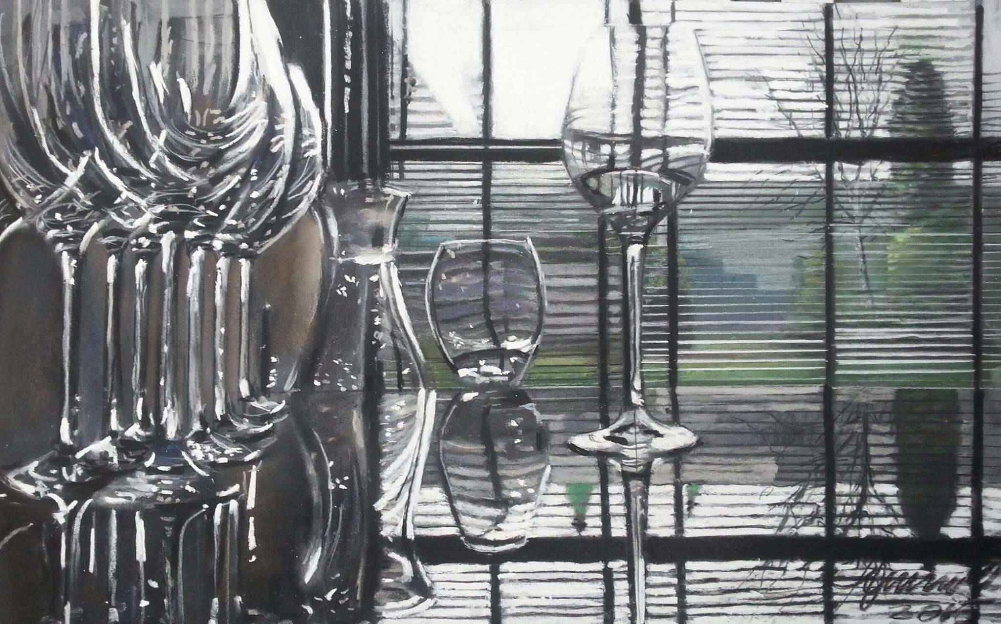kompozycja szklana tle okna ta trudność zawsze mnie bardzo interesuje!!szczegolnie w technice suchego pastelu.