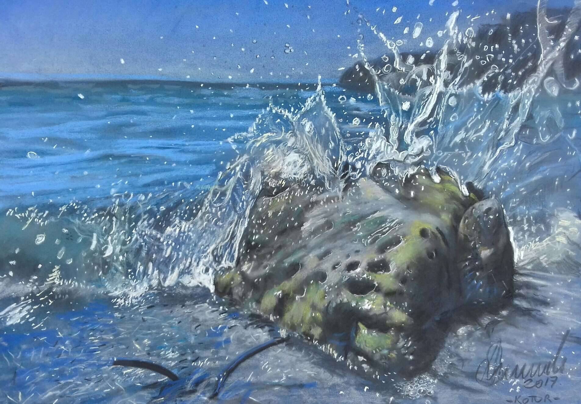 Andrzej Siewierski - Rozbryzgi fali na skale-Fala