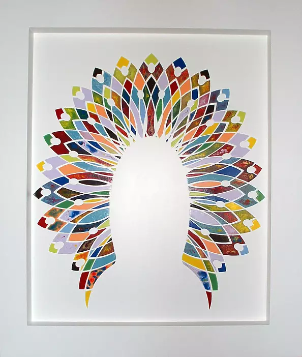 obraz wykonany metodą wzoru wycinanego w sklejce ,naklejonego i pomalowanego farbami akrylowymi.