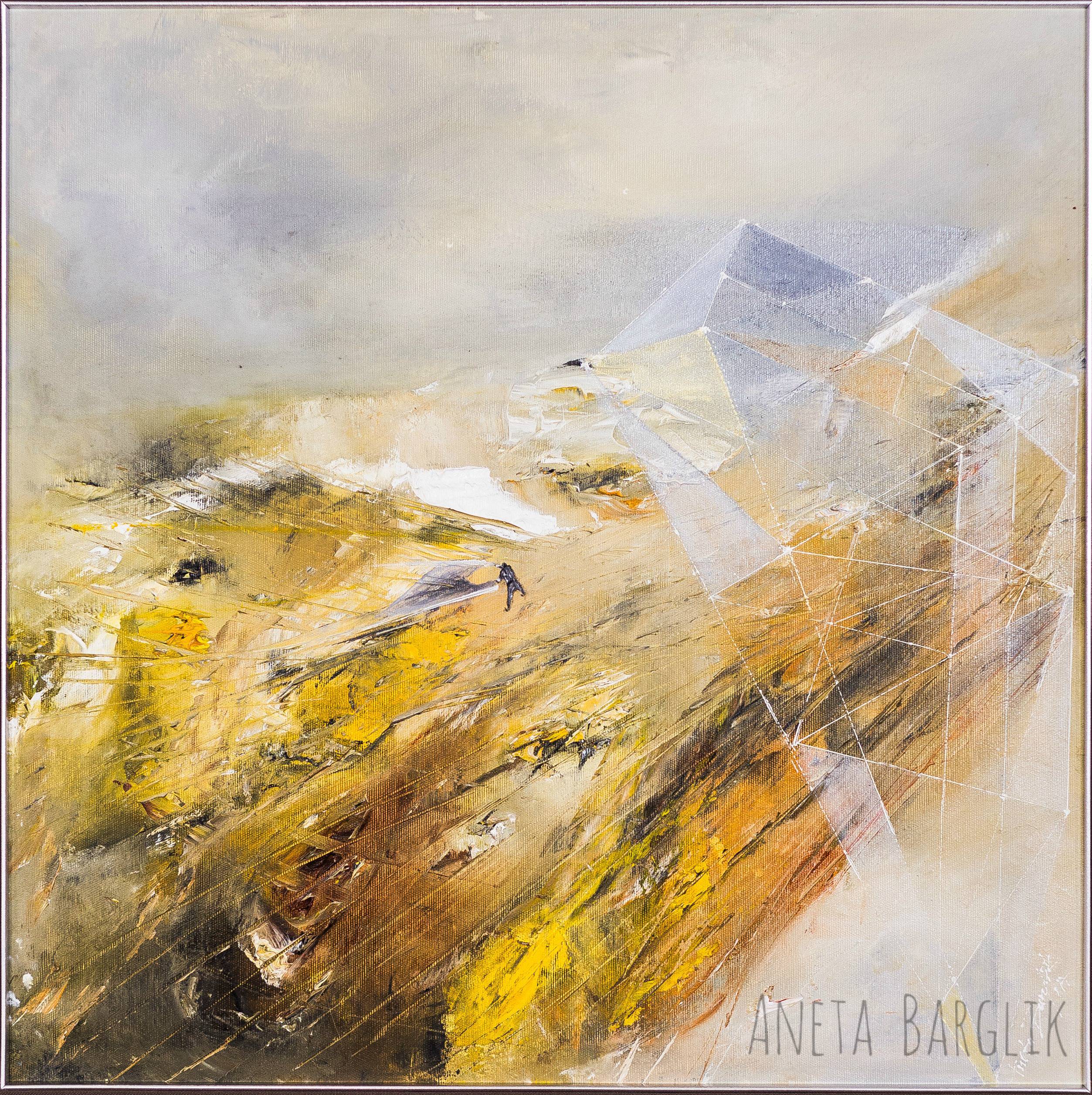 Sygnowany, datowany i opisany na odwrocie: Aneta Barglik 'Łapacz Czasu' 2017. Obraz olejny, zamalowane boki , naciągnięty na blejtram, Obraz malowany na płótnie. Praca wernisażowa, wystawiana w Nowy Świat Muzyki w Warszawie, "Fragmenty Czasu". Obraz oprawiony jest w białą nowoczesną ramę.