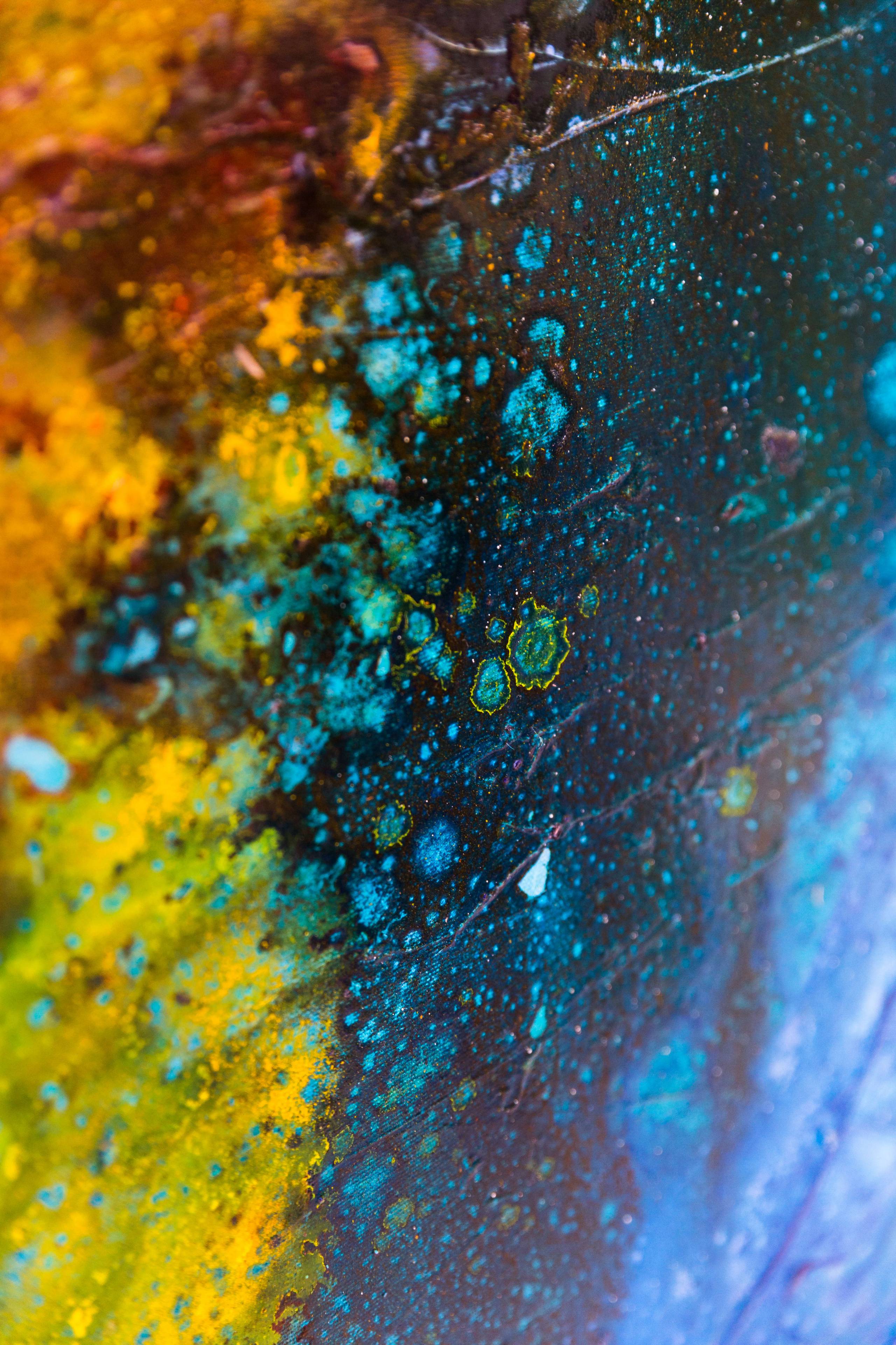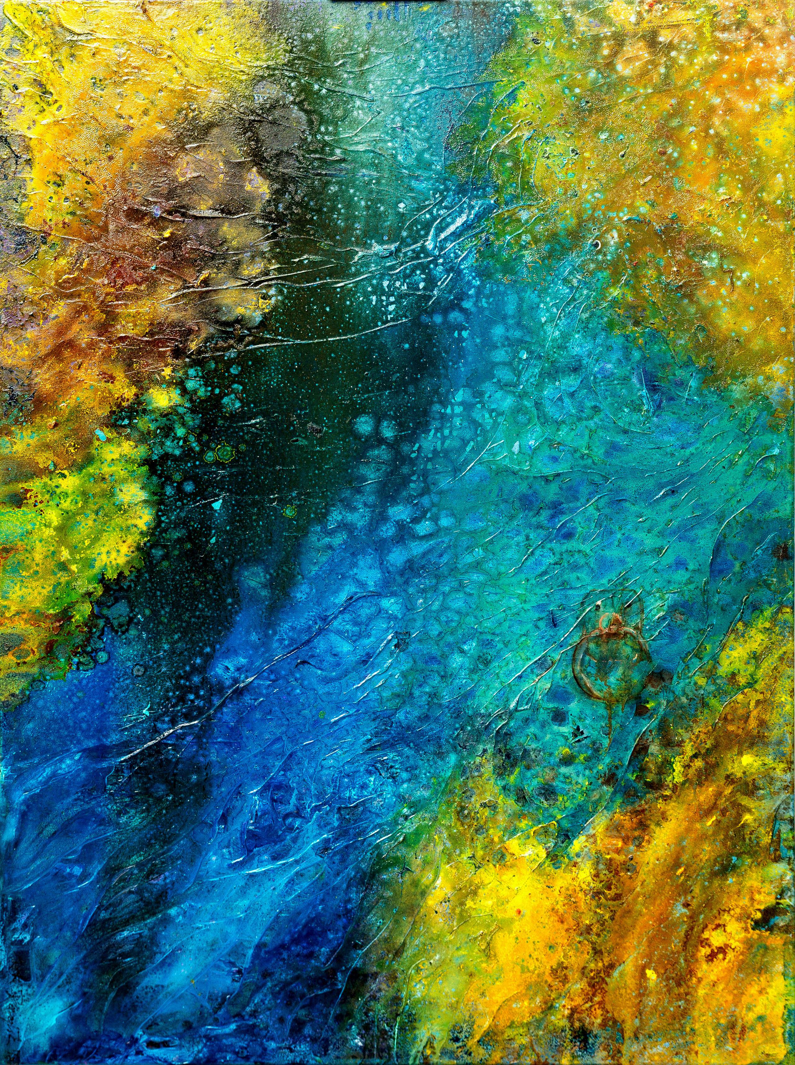 Sygnowany, datowany i opisany na odwrocie: Aneta Barglik 'Sekretne Drzwi' 2018. Obraz olejny, zamalowane boki , naciągnięty na blejtram, Obraz malowany na płótnie. Obraz dostępny od 26.04.18 gdyż wystawiany jest na wernisażu 'Obecność' w Galerii Filharmonii Opolskiej w Opolu. W obrazie tym przeplatają się barwy, kolor niebieski jest nie tylko barwą perspektywiczną, barwą nie wdzierającą się w głąb lecz pociągającą w dal...Kobalt w połączeniu z żółcią razem stają się duchowe, odnoszą się do przeszłości i przyszłości tak jak i same sekretne drzwi początek jak i koniec podróży.