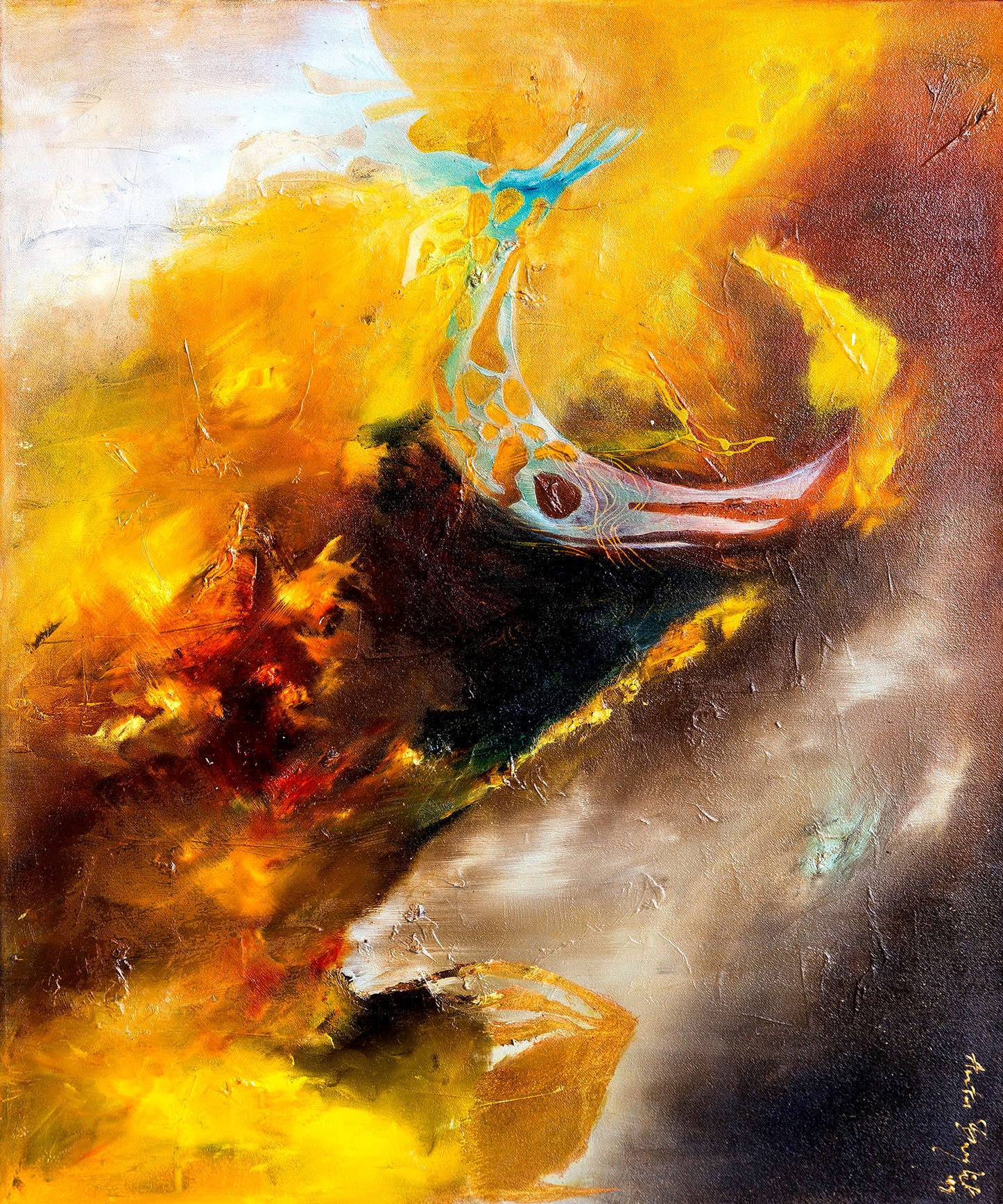 Sygnowany, datowany i opisany na odwrocie: Aneta Barglik 'the seen and the unseen' 2018. Obraz olejny, zamalowane boki , naciągnięty na blejtram, Obraz malowany na płótnie. . OPraca wernisażowa, wystawiana w Galerii Filharmonii Opolskiej, Opole, 'Obecność. Obraz znajduje się w czarno-złotej ramie tak zwanej ELKA” – FLOATER FRAME (pływająca ramka) idealnie pasujące do nowoczesnych obrazów. Utworzony dystans pomiędzy ramką, a obrazem daje poczucie głębi i trójwymiarowości co zwiększa rozmiar obrazu z 50x60 cm na 55x65 cm.
