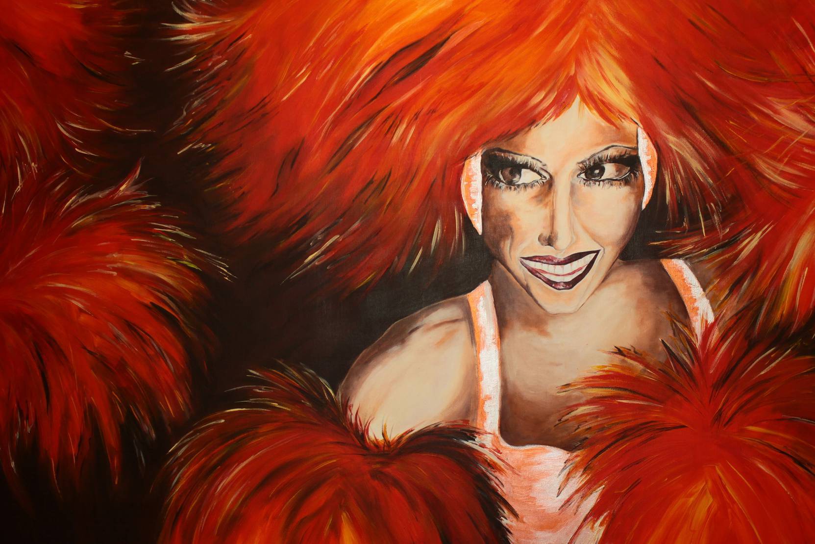 Obraz tchnie żywiołowością i energią. Dominujące, płomienne odcienie czerwieni i pomarańczy eksplodują z każdej strony, tworząc intensywne poczucie ruchu. Gęste, burzliwe pociągnięcia pędzla przypominają burzę włosów lub płomień, wciągając widza w tętniący dynamizmem świat. Postać na obrazie spogląda z chytrym uśmiechem, łącząc w sobie elementy tajemnicy i zadziorności. Atmosfera jest jednocześnie radosna i niepokojąca, jakby ukrywała jakiś sekret. Styl malarski przypomina ekspresjonizm, z wyrazistymi liniami i odważnym użyciem barw. Artystyczna technika charakteryzuje się ciekawym światłocieniem, który nadaje obrazowi głębi. Może wzbudzać poczucie ekscytacji, ale i lekkiego niepokoju. To jak oglądać fajerwerki w slow motion. A dzieci powiedziałyby: ale fajerwerki! To prawda, coś takiego przykuwa uwagę i prowokuje do myślenia o tym, co kryje się za uśmiechem. Co takiego mógłby powiedzieć bohater tego obrazu? Co on ma na myśli? To jest moment, kiedy sztuka staje się żywa w głowie odbiorcy. Wow!