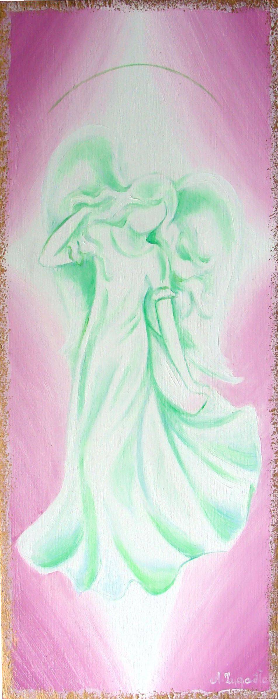wymiary: 39 x 15 x 1,5 cm. waga 0,9 technika: olej na desce GŁADKA FAKTURA FARBY SYGNOWANY I WERNIKSOWANY (połysk satynowy) Obraz olejny ręcznie malowany wysokiej jakości farbami olejnymi na desce. Tło - odcienie zielonego i liliowego. Boki zamalowane. Z tyłu obraz posiada regulowaną zawieszkę, haczyk i jest gotowy do powieszenia na ścianie. Sygnowany A. Zygadło. Indywidualne zamówienia Każdego z moich Aniołów mogę namalować w wybranych przez Państwa kolorach tła. Masz własny pomysł lub potrzebujesz czegoś w innym kolorze? ZAPRASZAM DO BEZPOŚREDNIEGO KONTAKTU Z ARTYSTĄ, WSZELKIE PYTANIA , NIEJASNOŚCI, INDYWIDUALNE ZAMÓWIENIA.