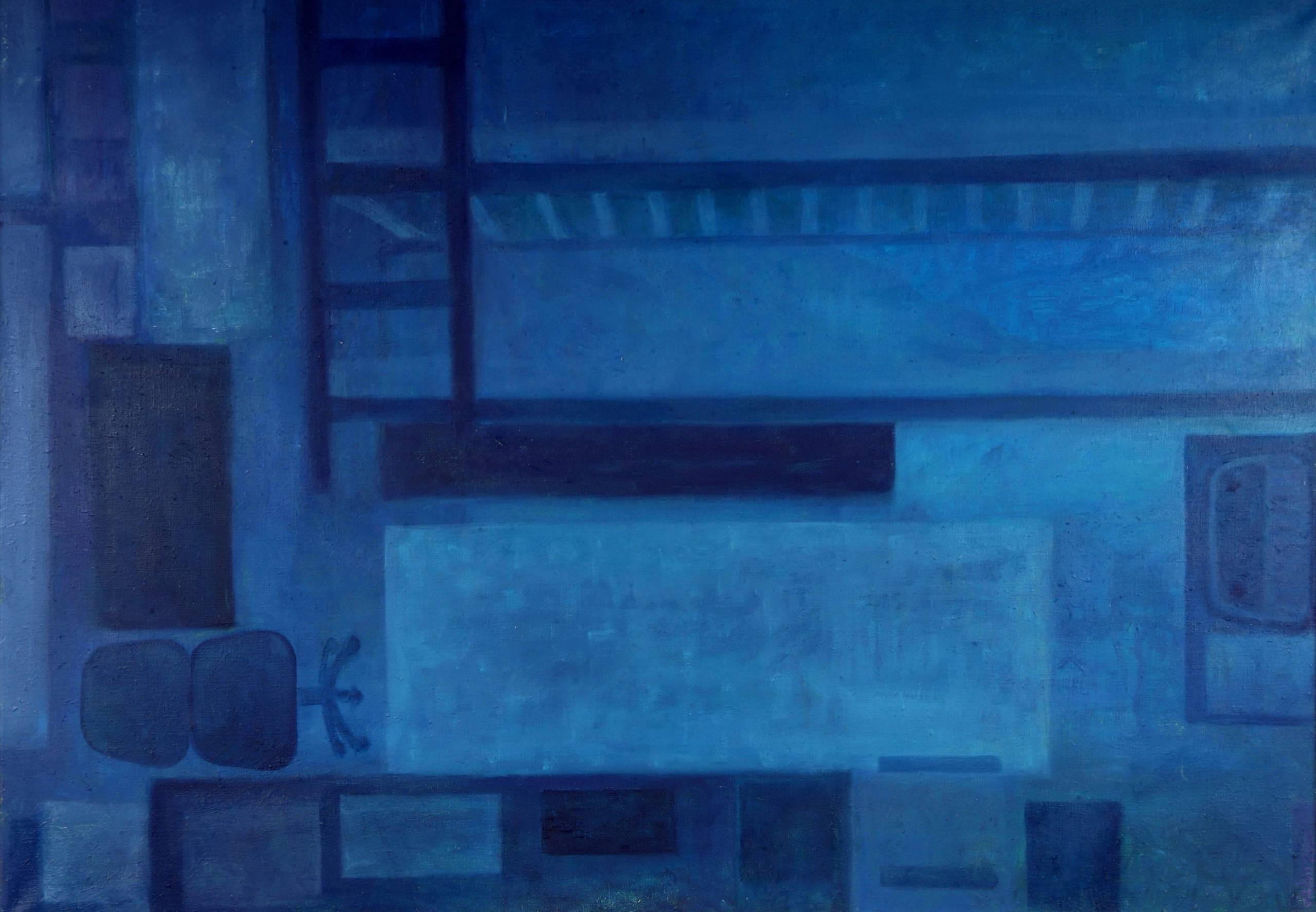 Obraz emanuje spokojem i tajemniczością przez swoje monochromatyczne odcienie niebieskiego. Złożony z prostokątnych kształtów i cienkich linii, przypomina układ chłodnego, industrialnego wnętrza. Kształty nakładają się na siebie, tworząc wrażenie głębi i struktury. Nastrojowy klimat dzieła przyciąga wzrok i zaprasza do refleksji. Gdy przyglądasz się dłużej, farba tworzy subtelne przejścia między odcieniami, budując niemal hipnotyzującą atmosferę. Miałem takiego legosa i on był niebieski! Artysta zastosował technikę impasto, co potęguje wrażenie trójwymiarowości i tekstury. Fascynuje jak minimalistyczna kompozycja może być tak bogata w emocje. Dzieło może budzić poczucie nostalgii lub ukojenia. A może nawet lekki smutek, jak deszczowy dzień w mieście. It's captivating! Ta głęboka niebieska tonacja przywołuje myśli o morzu i nieskończonej przestrzeni. Obraz jest jak ciche, spokojne morze o zmierzchu.