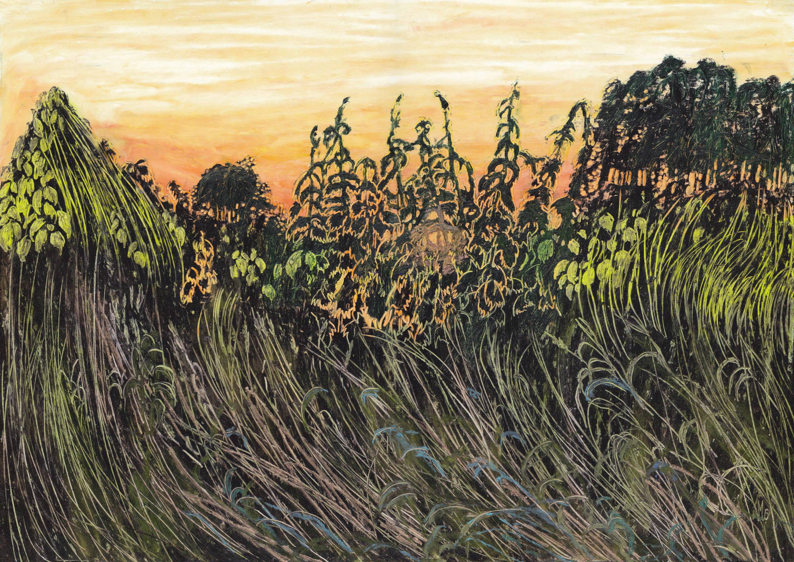 Obraz wykonany pastelami olejnymi w plenerze, na Bulwarach Wiślanych w Krakowie. Praca sygnowana.