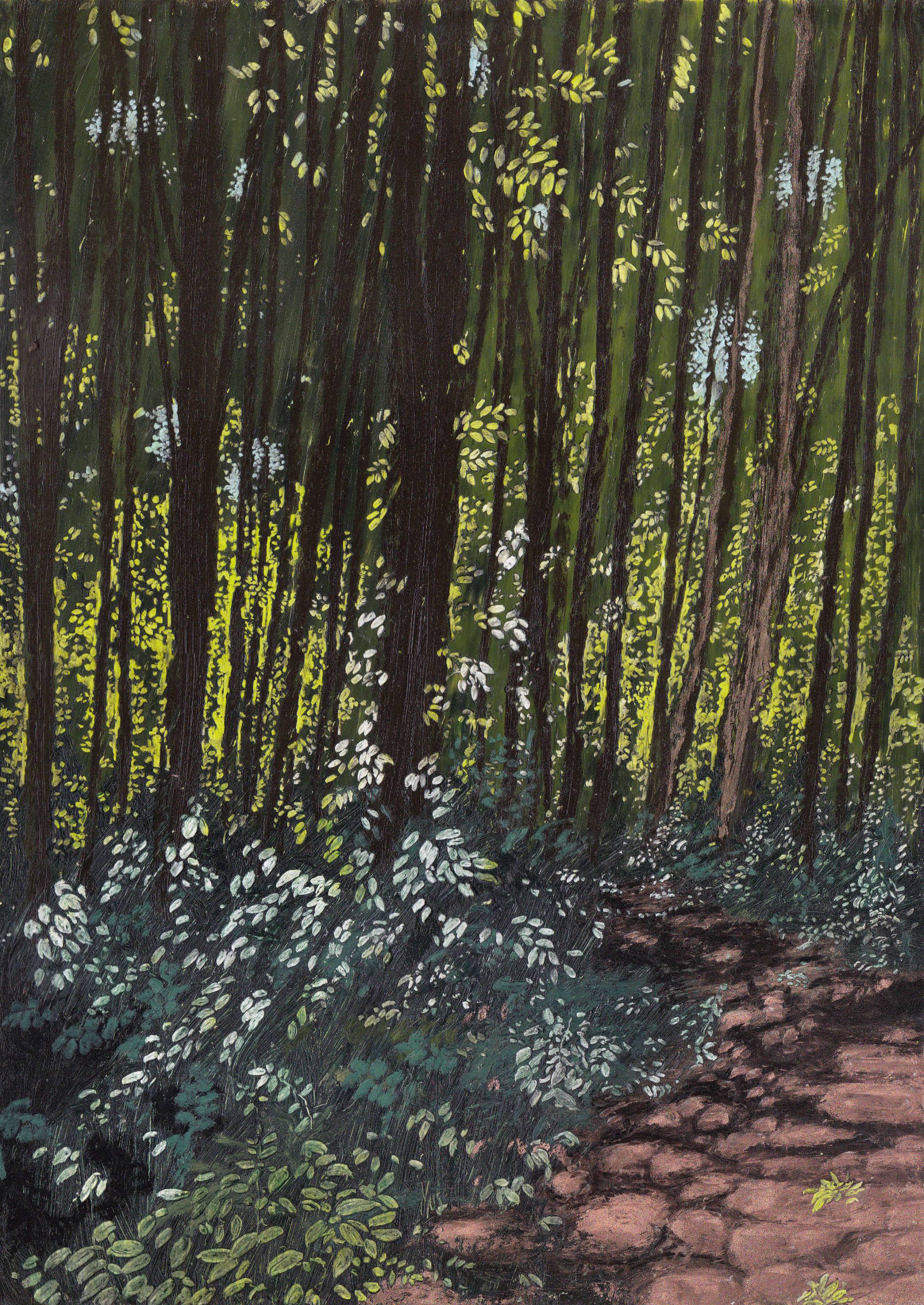 Obraz wykonany pastelami olejnymi w plenerze, na Skałkach Twardowskiego w Krakowie. Praca sygnowana.