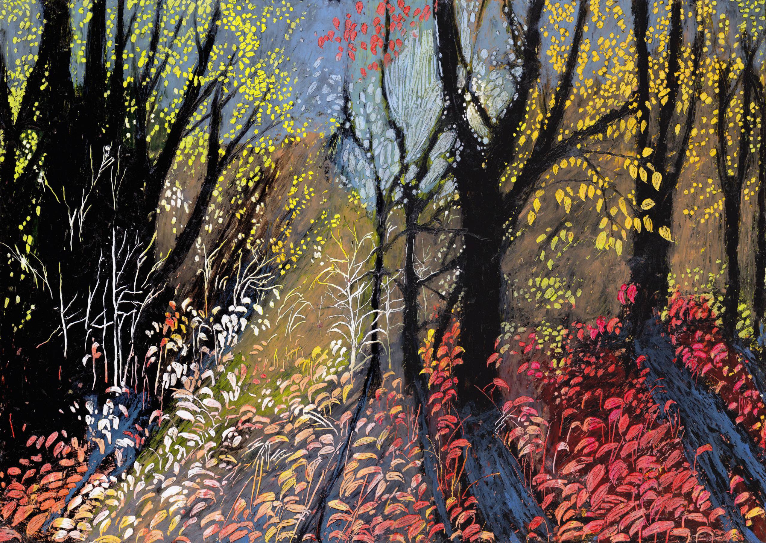 Obraz wykonany pastelami olejnymi w plenerze, na Skałkach Twardowskiego w Krakowie.