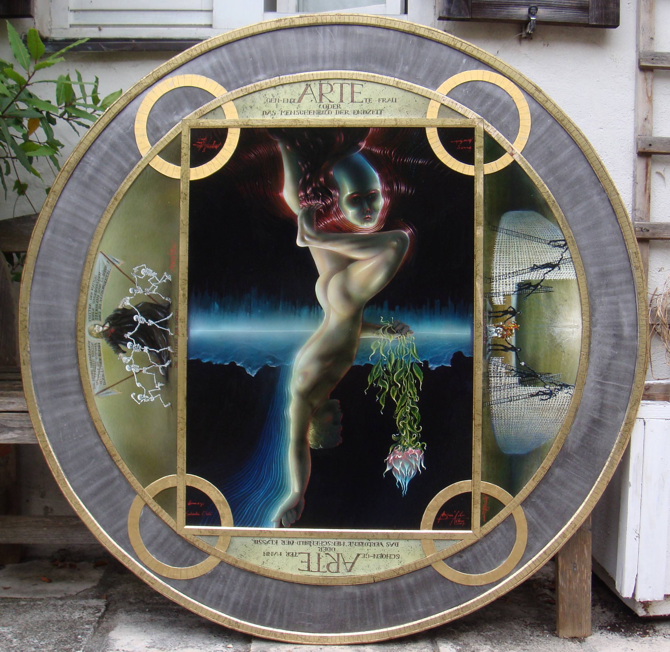 Das Gemälde kann man drehen. Auf der Rückseite befindet sich ein kleiner Motor. Siehe auch "Verdrehte Welt II".