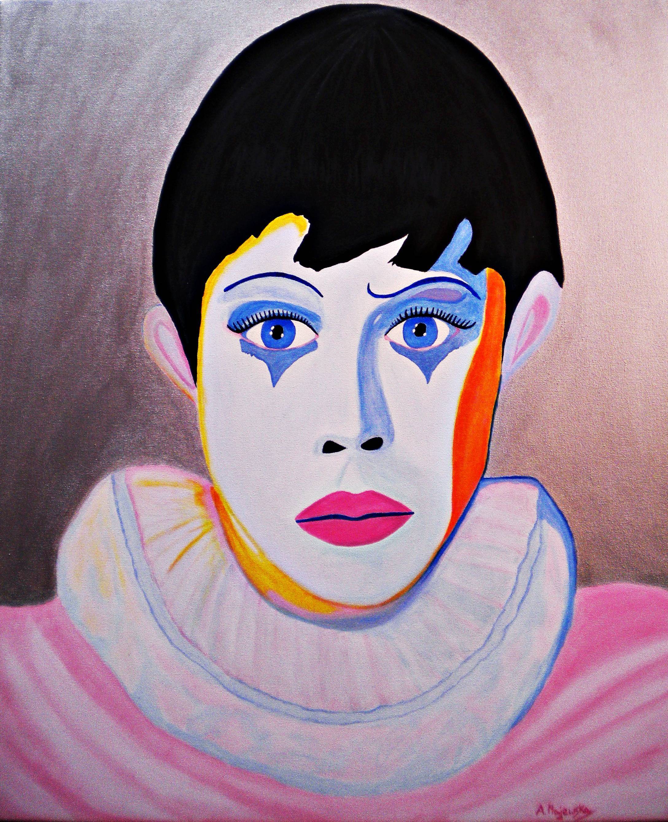 Na obrazie widzimy twarz osoby o wyrazistych oczach, które przyciągają wzrok jak magnes. Neonowe kolory – różowy, niebieski i pomarańczowy – dominują, tworząc dynamiczny dance of colors. Tła pastelowe, subtelnie przechodzące w brązy, dają poczucie głębi. Praca przypomina trochę styl pop-artowy, gdzie mocne linie i kontrasty są na porządku dziennym. Twarz, o niezwykle wyrazistym wyrazie, emanuje ciekawością i tajemnicą. Wygląda trochę, jakby postać miała zaraz coś dodać lub wybuchnąć śmiechem. Może poocy się śmiać. Ta iluzja dynamiki sprawia, że spojrzenie na obraz to jak patrzenie na kogoś, kto jest zaskoczony – albo po prostu zamyślony. Sama kompozycja jest harmonijna, a jednocześnie pozostawia wiele miejsca na interpretacje. Patrząc na ten obraz, mam wrażenie, jakby artysta bawił się formą i kolorem, eksperymentując z ekspresją i emocjami. Czy mnie ten obraz przeraża, czy zaciekawia? Może trochę i to, i to. Kiedyś widziałem taki obraz w muzeum. Styl jest swobodny, niemalże spontaniczny, jakby na przekór klasycznym technikom. Emocji wywołuje multum, od ciekawości po lekką nostalgię. Jeden rzut oka i czujesz to intrygujące napięcie. Tylko niebo jest limitem dla takiej sztuki!
