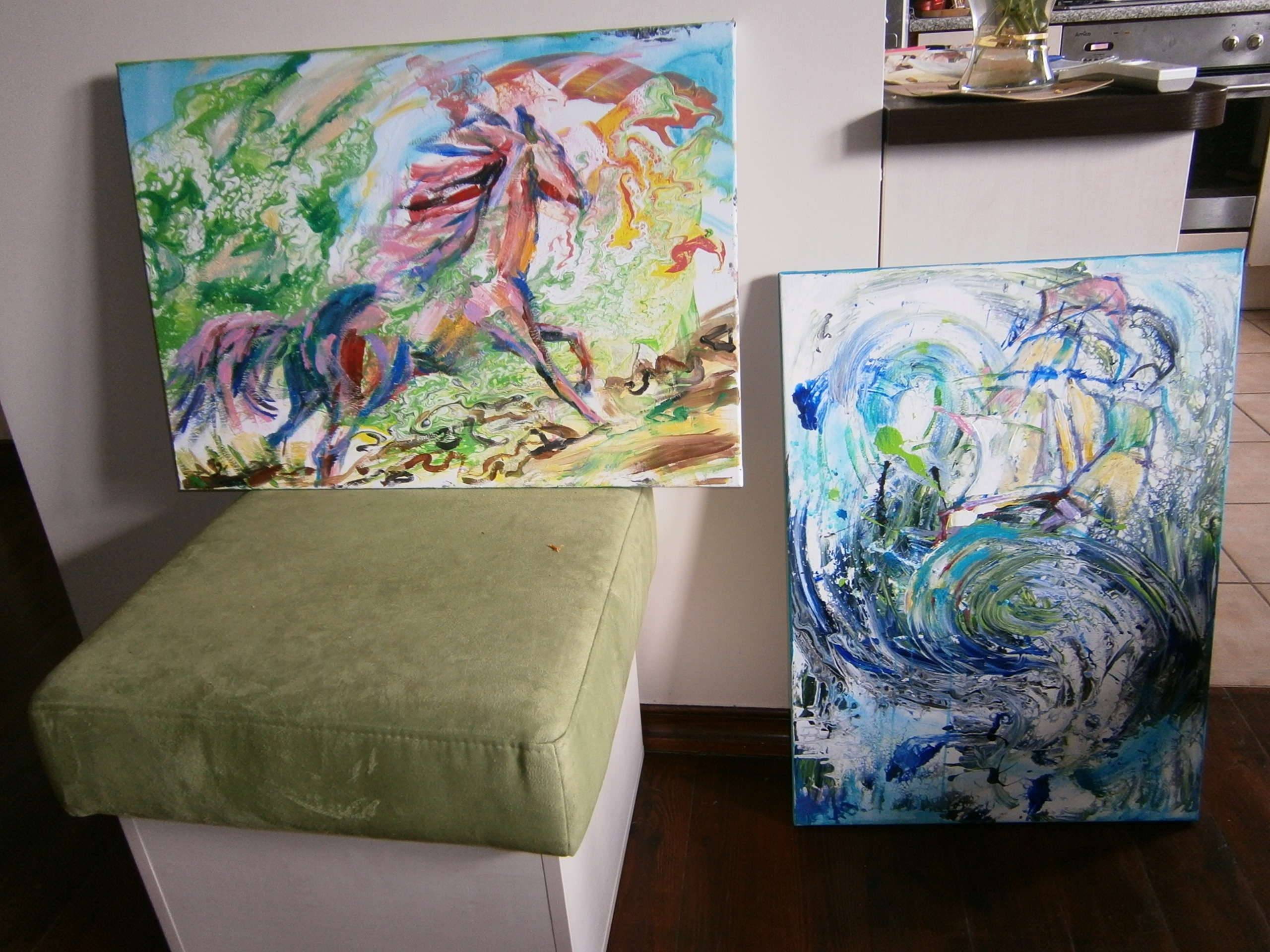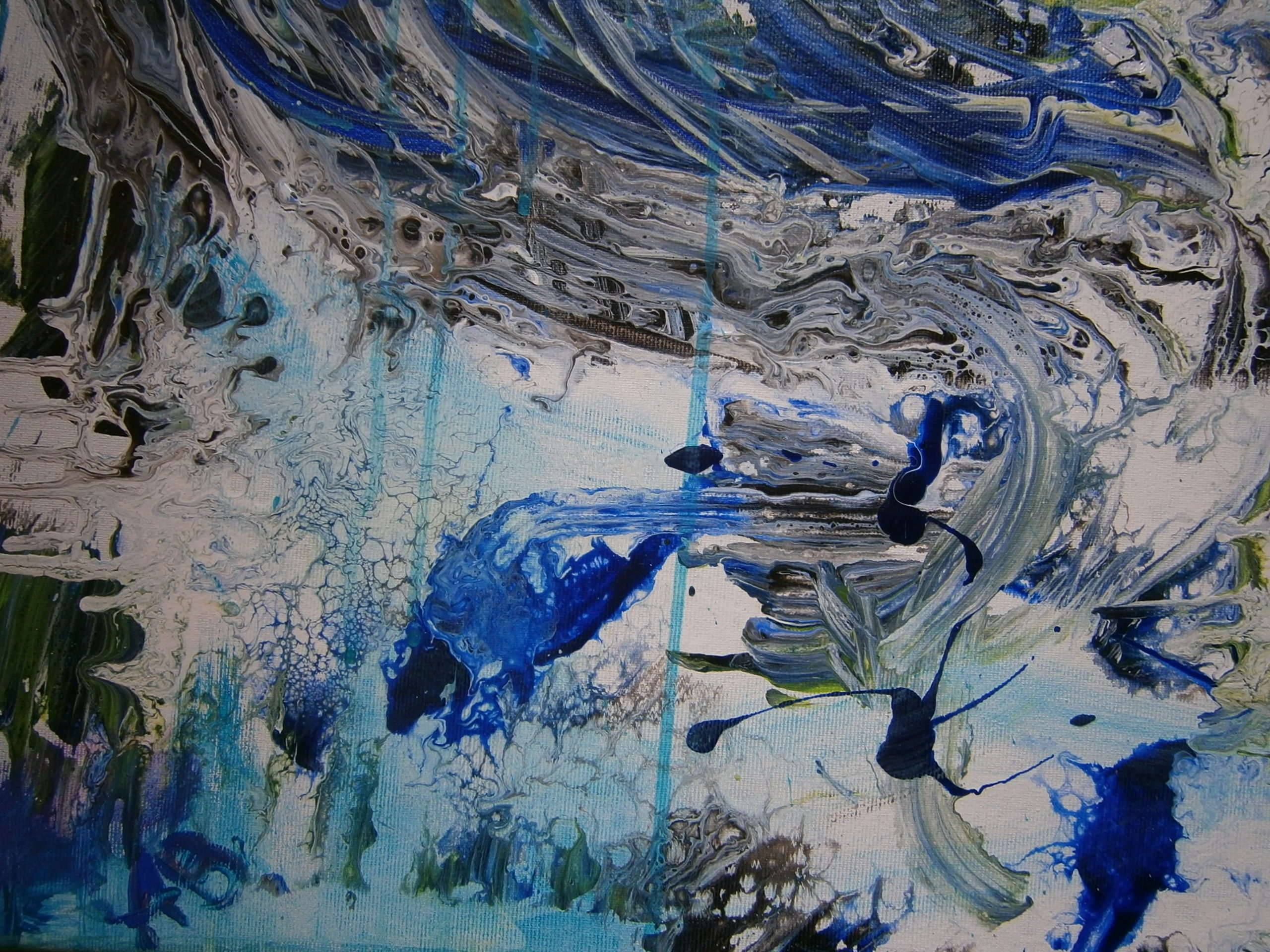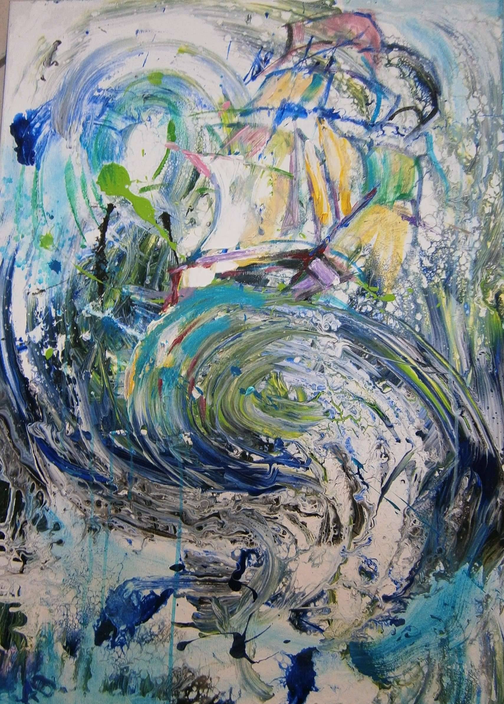 Symboliczny obraz drogi życiowej pod figurą żaglowca na wzburzonych falach. Obraz gotowy do ekspozycji , zamalowane boki w technice pouring akryl.