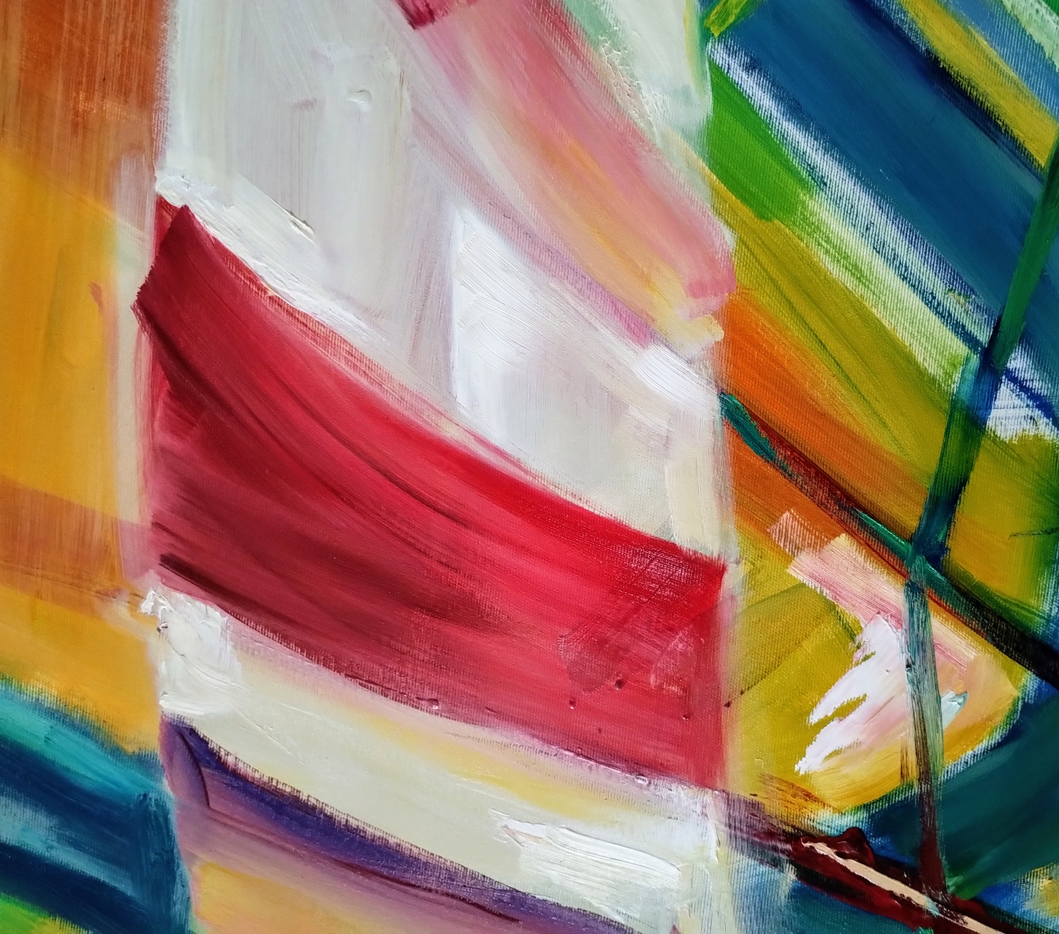 Abstrakcja z motywami żagli i windsurfingu.