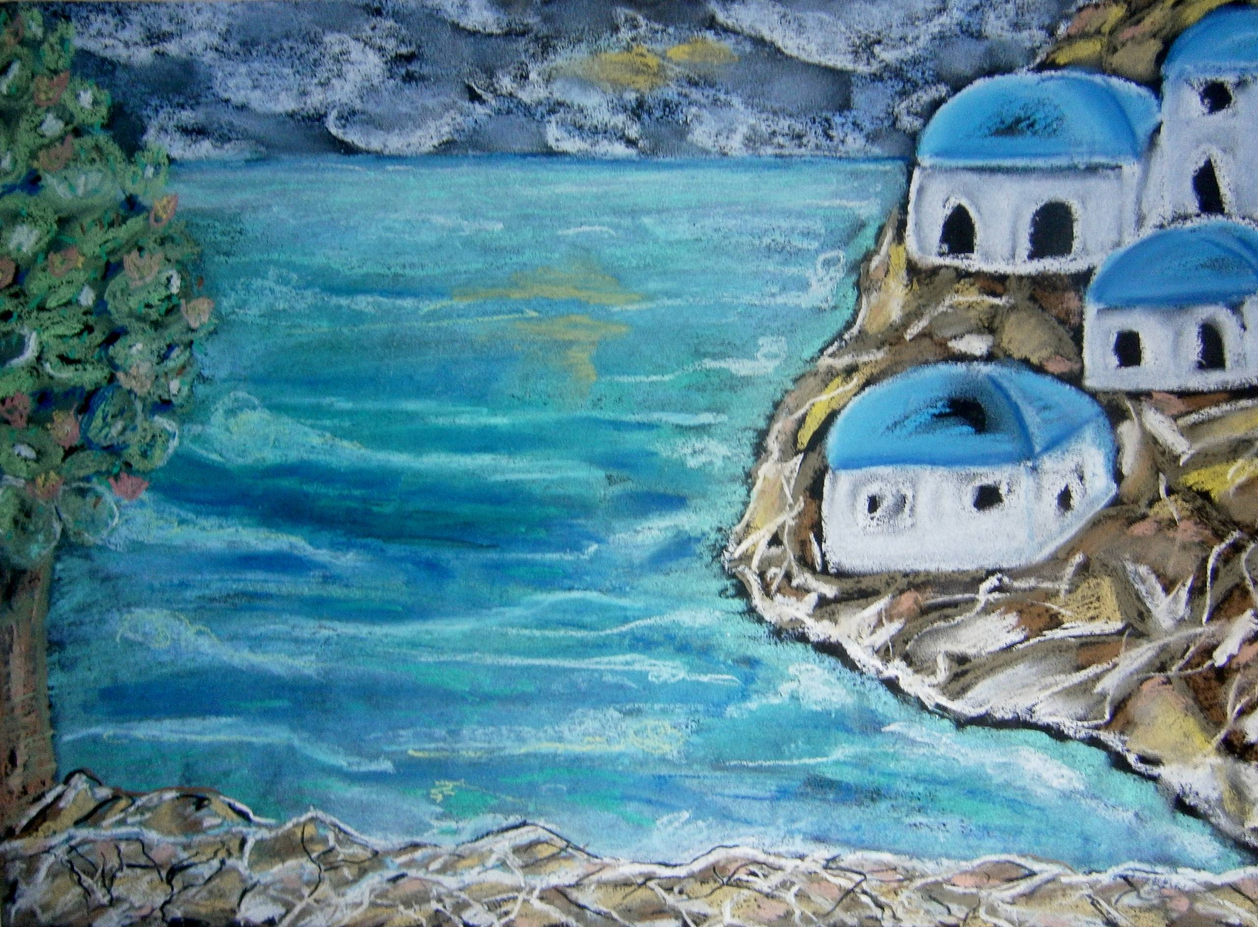 ,,Na skale,,-pejzaż .Sucha pastel.Doskonale zabezpieczony przed uszkodzeniem ,rozmazywaniem.