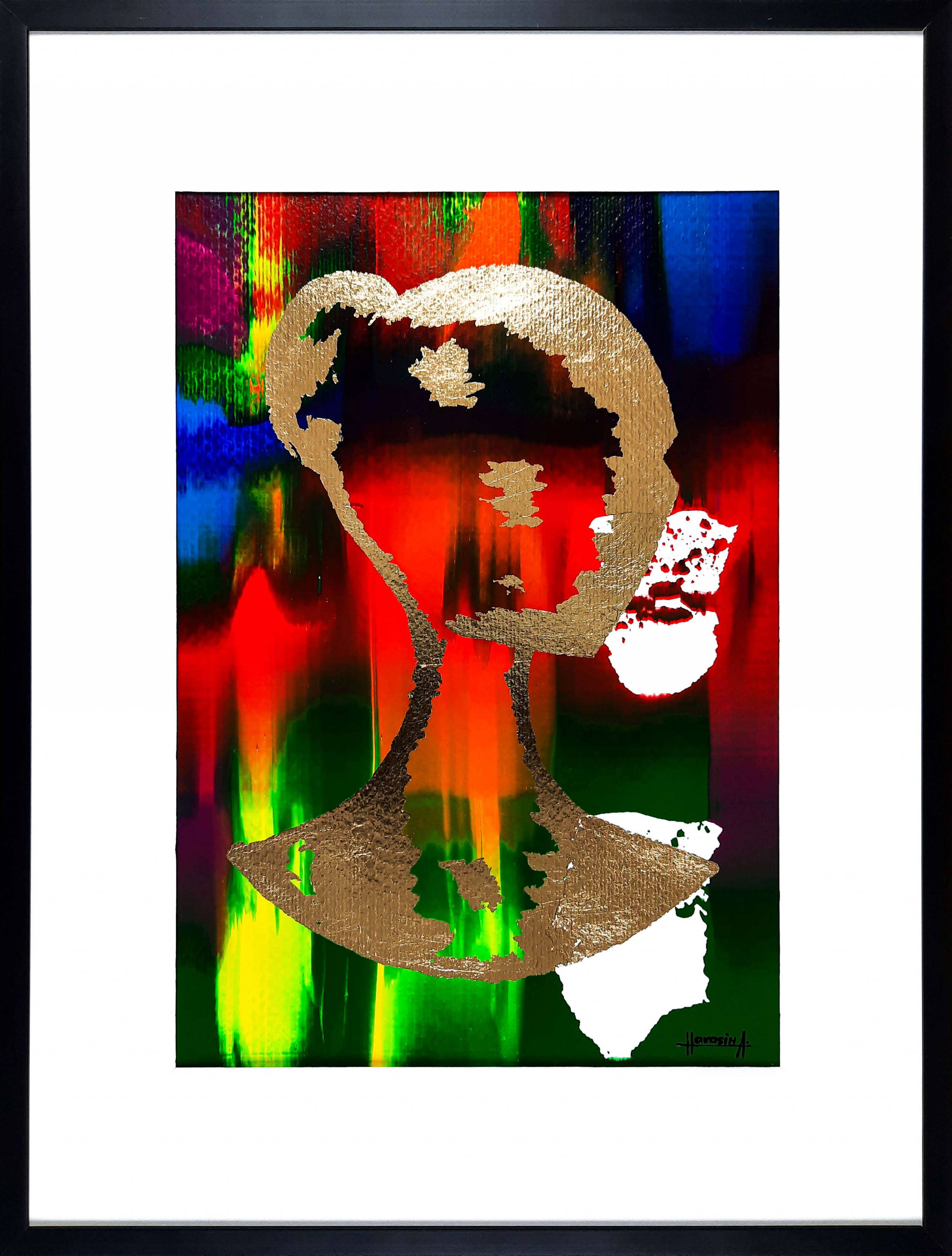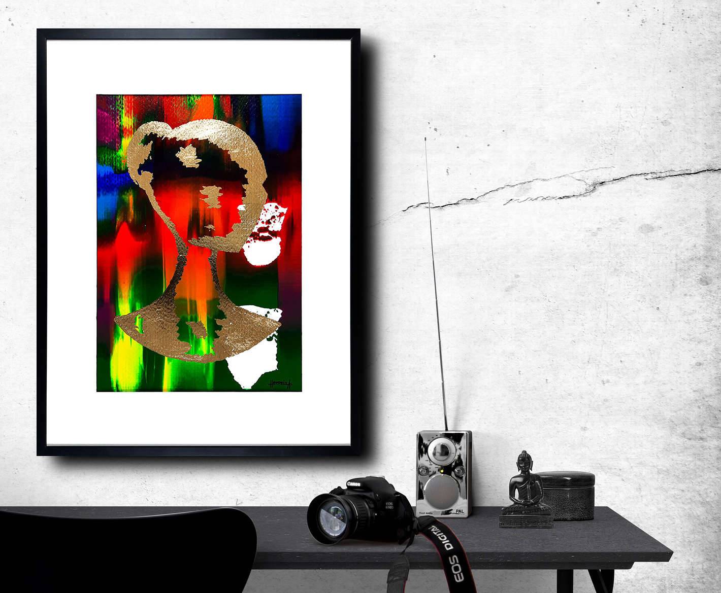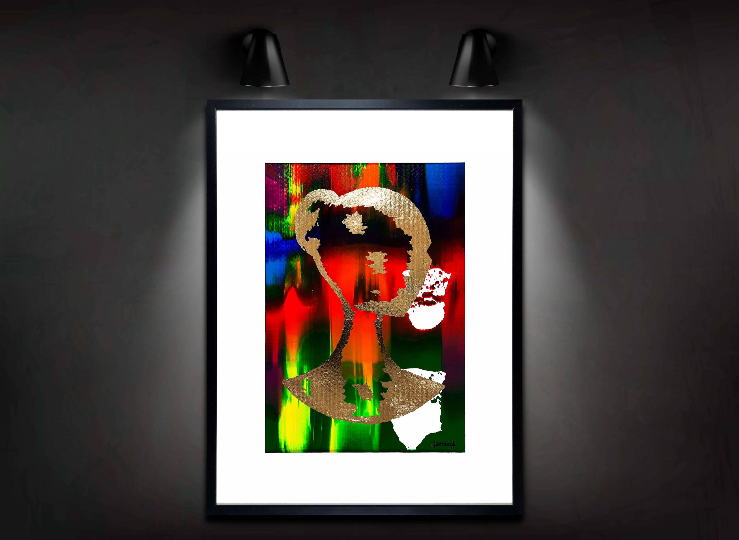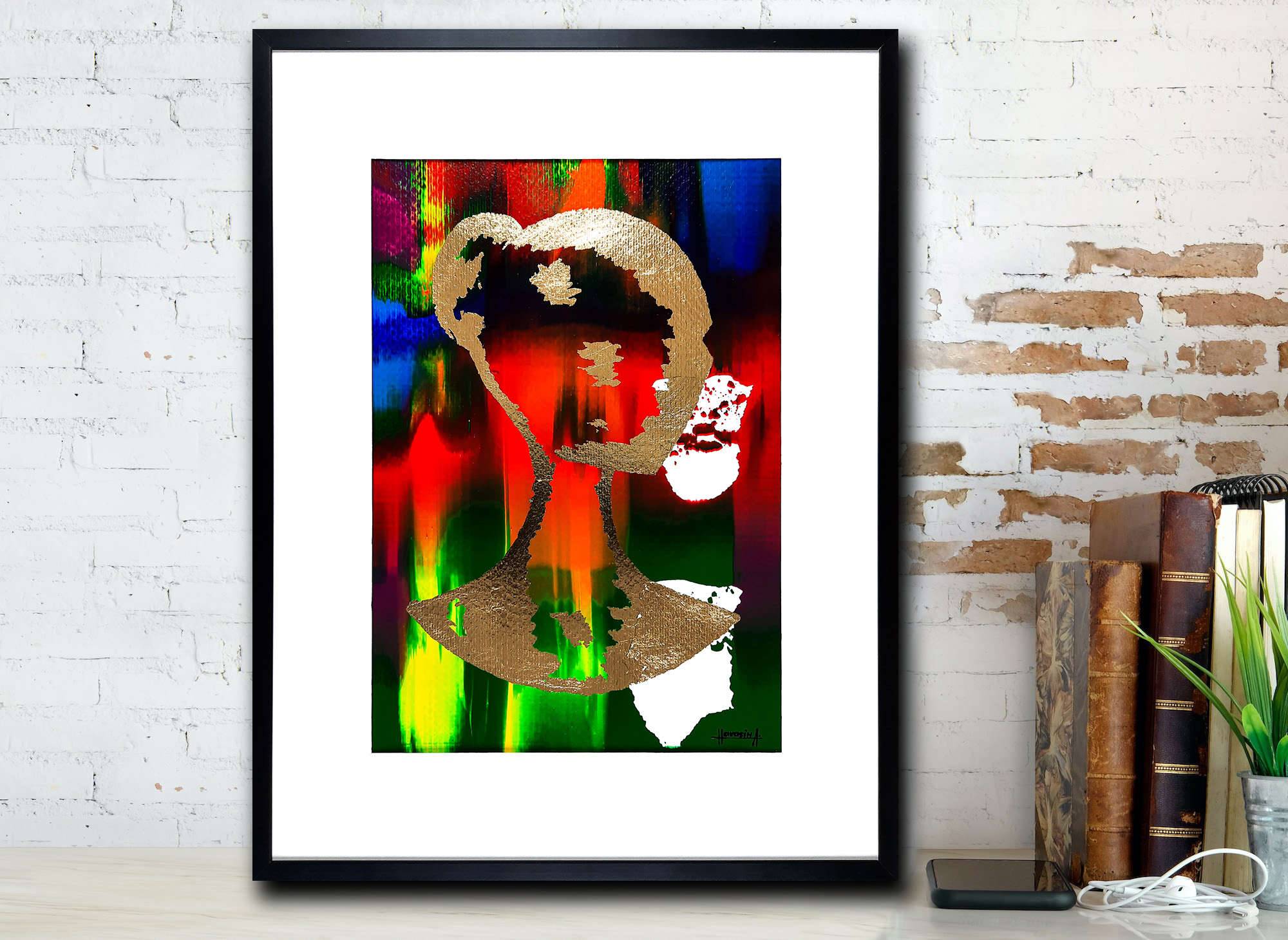 Cykl: Kolekcja MINI / Kobiece Oblicza Tytuł: KM/KO/14/2021 Technika: akryl na papierze, szlagmetal Papier: 400 g/m2, bezkwasowy Wymiar obrazu: 40 x 30 cm Wymiar ramy: 40 x 30 cm Obraz można zakupić z ramą lub bez ramy (dołączone białe passe partout). Proszę o wcześniejszy kontakt za pośrednictwem strony, jeżeli chcą Państwo zakupić obraz bez ramy (podana cena jest z ramą). Obraz namalowany jest na najlepszej jakości papierze bezkwasowym o gramaturze 400 g/m2, który gwarantuje trwałość i niezmienność właściwości w czasie. Obraz jest wykonany wysokiej jakości farbami akrylowymi holenderskiej firmy oraz szlagmetalem. Obraz jest zawerniksowany. Obraz jest oprawiony w białe passe partout oraz czarną, aluminiową ramę. Front ramy stanowi szyba ze szkła antyrefleksyjnego. Obraz posiada certyfikat autentyczności dołączony do obrazu. Obraz jest pakowany w formie prezentowej.