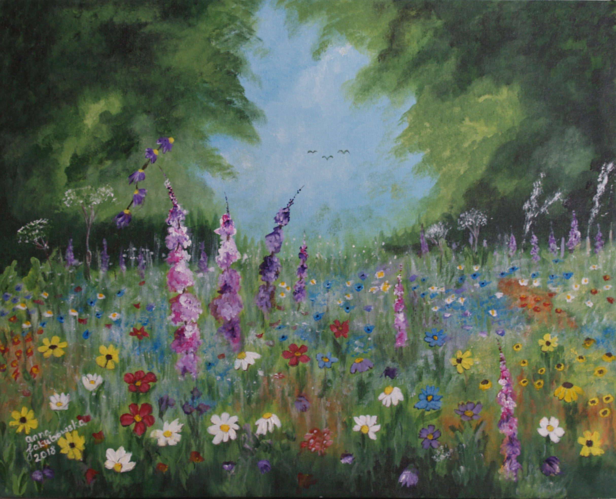 Obraz akrylowy na płycie oprawiony w ramę z 2018 r.