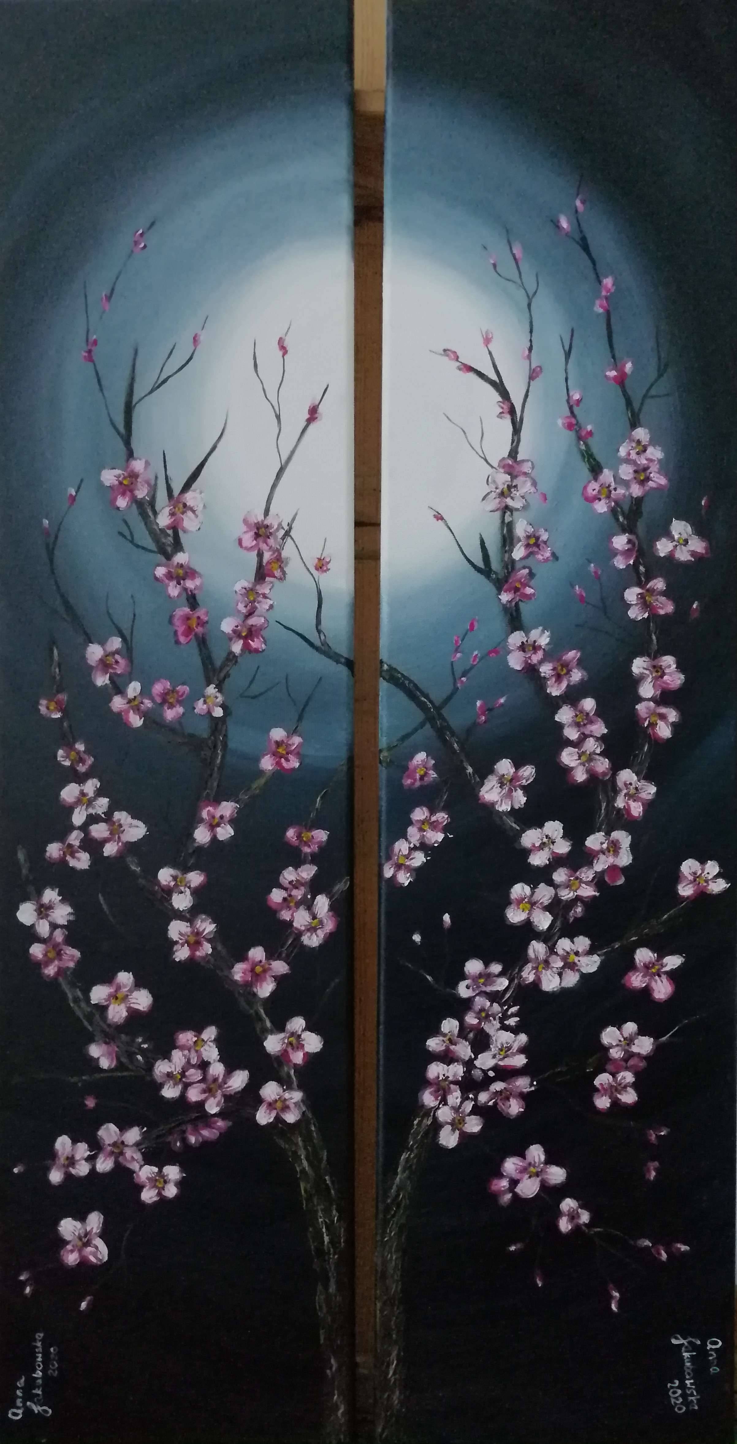 "Wiśnia 2" z 2020 r. to obraz olejny na płótnie składający się z 2 części (dyptyk) o wymiarach 2 x 20 cm x 80 cm. Boczne krawędzie płótna są zamalowane. Obraz można powiesić oddzielnie jako dwa niezależne obrazy, bądź razem. Obraz może stać się miłym prezentem dla miłośników przyrody.
