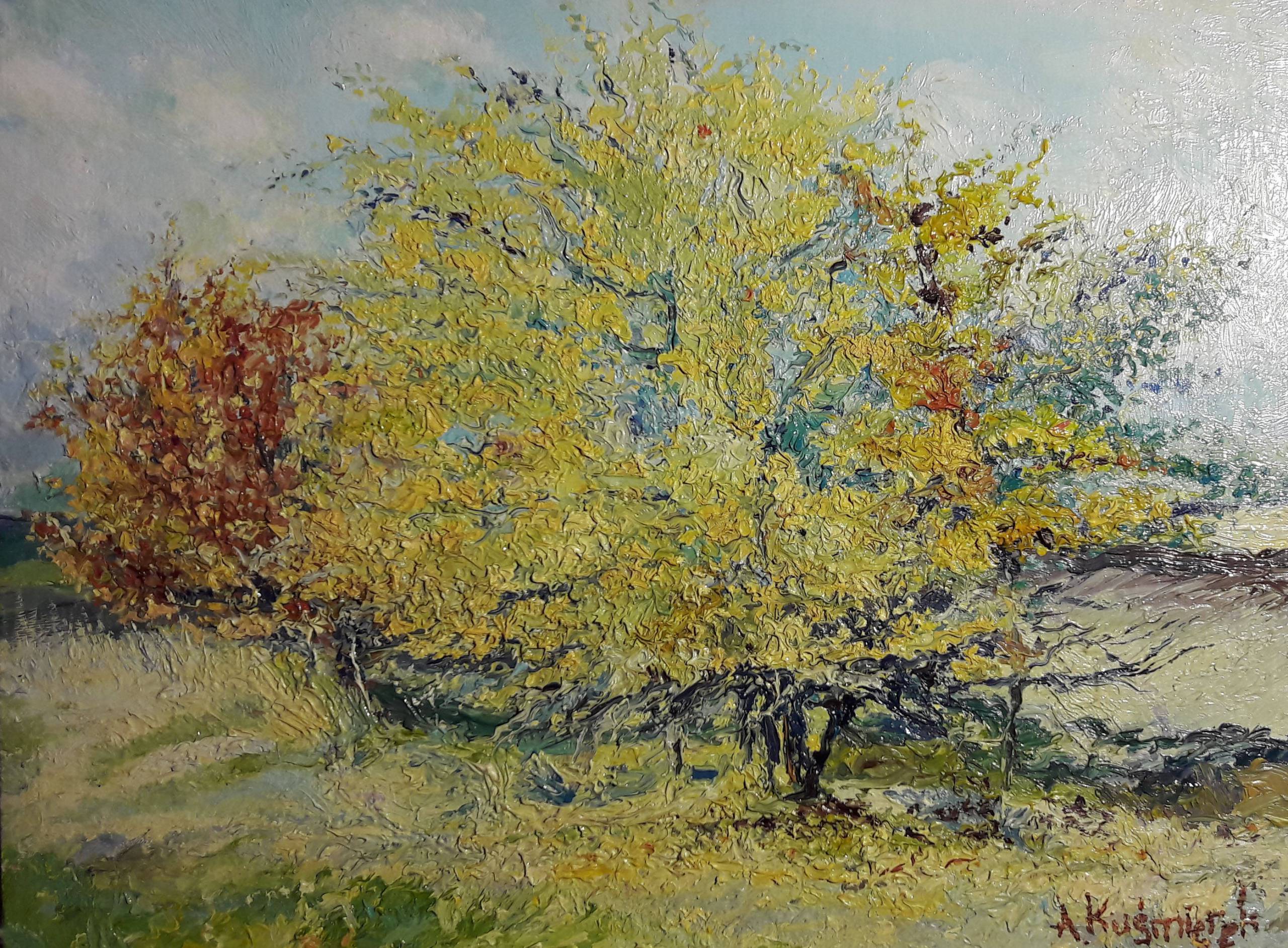 Witam, Sprzedam obraz wykonany farbami olejnymi , na sklejce . Tematyka jesieni . Jest to fragment polnej drogi, w jesiennej odsłonie . Przedstawia również , dziką jabłoń, rosnącą przy polnej drodze ,prowadzącej do moich łąk, z której jako mała dziewczynka zrywałam jabłka. Wydała mi się wyjątkowa i niesamowita w swojej formie .