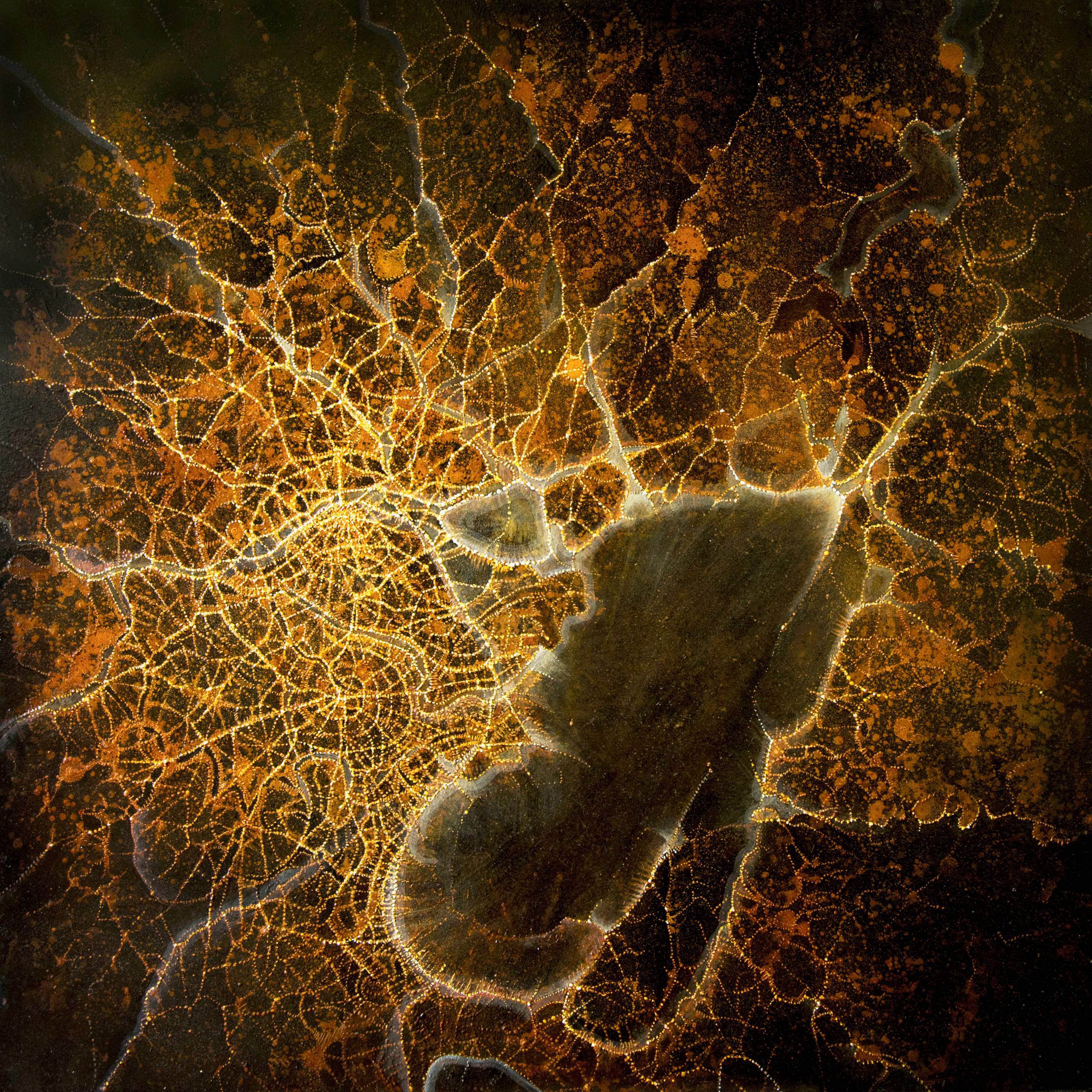 Obraz, który widzimy, hipnotyzuje bogactwem złocistych odcieni, przeplatanych ciemnym tłem. Wygląda jak widok na miasto nocą z kosmicznej perspektywy. Jasne linie przypominają delikatne sieci pajęcze, oplatające wszystko dookoła, wprawiając oko w ruch. Kompozycja jest dynamiczna, pełna splątanych ścieżek prowadzących w nieznane. Atmosfera tego dzieła jest wręcz magiczna, przypomina nieco marzenie senne, gdzie wszystko wydaje się możliwe. Taki trochę kalejdoskopik emocji. Stosowana technika przypomina abstrakcjonizm z dodatkiem surrealistycznych detali. Artysta zręcznie wykorzystał kontrast między jasnym a ciemnym, tworząc wrażenie głębi i tajemniczości. Obraz potrafi wywołać różne interpretacje. Czy to mapa galaktyki? A może wnętrze jakiegoś nieziemskiego organizmu? Działa na wyobraźnię, prawda? Ja tam widzę wielką, kosmiczną przygodę, jak z bajki. Dziecko mogłoby powiedzieć: To wygląda jak złote drogi w zaczarowanej krainie! Czasem art, który jest taki nieokreślony, bardziej przyciąga, bo sam sobie dopowiadasz resztę. To jak rzucić się w głęboką wodę pełną myśli i emocji. Fascynująca podróż dla oka i duszy. Ale moment, te linie mają coś z glamour!