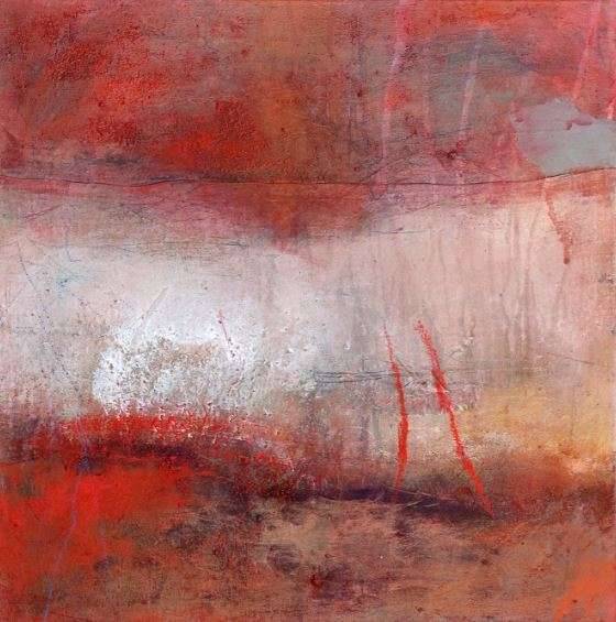 Na obrazie dominuje ciepła paleta barw, gdzie głęboka czerwień miesza się z subtelnymi odcieniami pomarańczy i rudości. W centrum dostrzegamy jasną, niemal białą przestrzeń, która niczym mgła rozlewa się po zmierzchającym krajobrazie. Kompozycja jest dynamiczna, a przeplatające się linie przypominają pęknięcia w murze, stanowiąc interesujący kontrast dla rozproszonej struktury tła. Atmosfera tego dzieła przywodzi na myśl jesienną melancholię, gdzie czuć nostalgię i pewną tęsknotę. Coś jak "autumn vibes". Styl artysty oscyluje między abstrakcją a impresjonizmem, gdzie techniki rozmywania i stapiania kolorów są na pierwszym planie. Emocje, które obraz wywołuje, mogą być zaskakująco różnorodne. Dla jednych to scena pełna spokoju, dla innych miejsce skrytych emocji, niemal jak głęboki oddech przed burzą. A ja widzę tu coś zaskakującego, jak gdyby artysta próbował złapać mgnienie światła na horyzoncie, chwilę przed zachodem słońca. Malowałem kiedyś taką łąkę. Może niektórzy mogą pomyśleć, że to po prostu chaos, ale to jest taki kontrolowany bałagan. Patrząc głębiej, można dostrzec pulsującą energię, niemal jak wulkan w stanie spoczynku. To obraz, który można oglądać wiele razy i za każdym razem odkrywać coś nowego. Fascynujące, prawda?