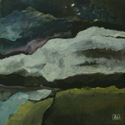 Na obrazie dominują kontrasty między ciemnymi i jasnymi kolorami. Czernie i zielenie tworzą tło, a na ich tle wybija się jasna, niemal biała forma, przypominająca chmurę lub górski szczyt. Kompozycja jest dynamiczna, jakby podrzucająca odbiorcę w środek niespokojnego krajobrazu. Atmosfera jest tajemnicza i nieco nostalgiczna; ma się wrażenie, że jest się świadkiem momentu zatrzymanego w czasie. Artysta użył techniki impasto z widocznymi ruchami pędzla, co dodaje tekstury i głębi. Ta chmura jak wata cukrowa jest ogromna i piękna, pomyśli dziecko. Obraz może budzić refleksję nad potęgą natury i przemijającym pięknem. Czasami wydaje się, że pejzaż skrywa jakieś sekrety, hidden secrets, które tylko czekają na odkrycie. Osobiście, patrząc na to dzieło, czuję spokój, ale jednocześnie ekscytację związanym z nieodkrytym. Ten obraz przypomina mi, jak ważne jest docenianie chwil tu i teraz. Choć widać w nim pewien chaos, to właśnie ten artystyczny nieład dodaje mu uroku. Zachęca odbiorcę do zanurzenia się w nieskończoności własnych myśli i interpretacji.
