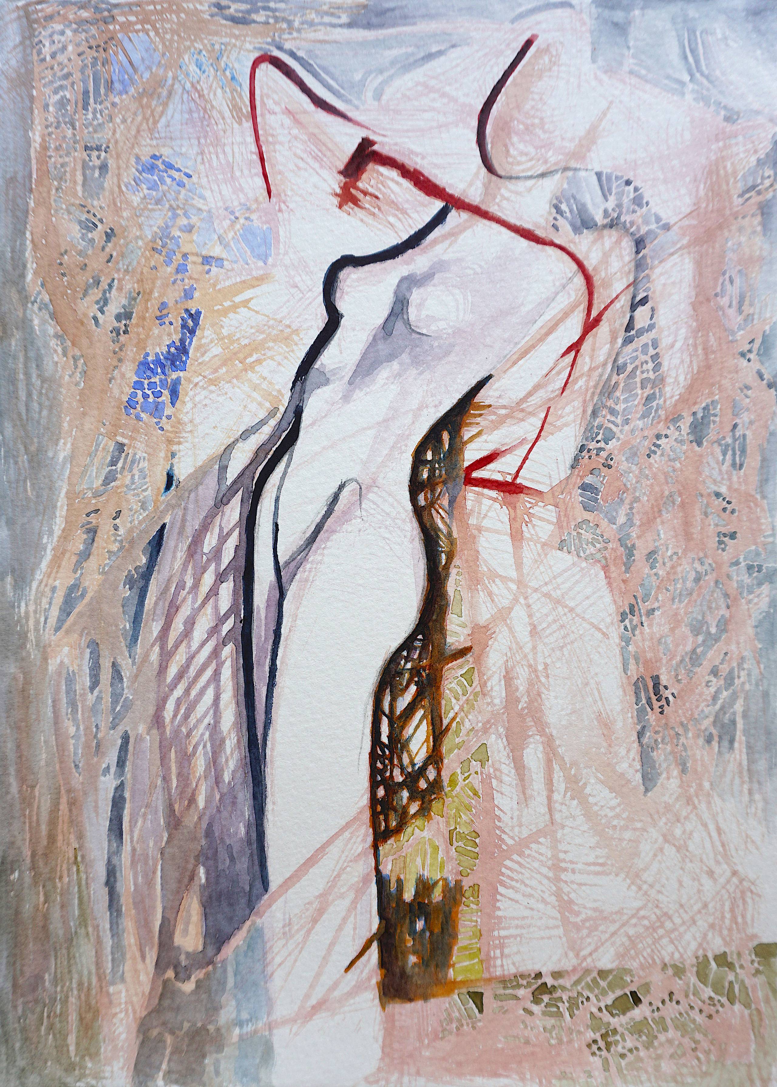 Akwarela oprawiona w passe-partout o wymiarze zewnętrznym 30 x 40 cm.