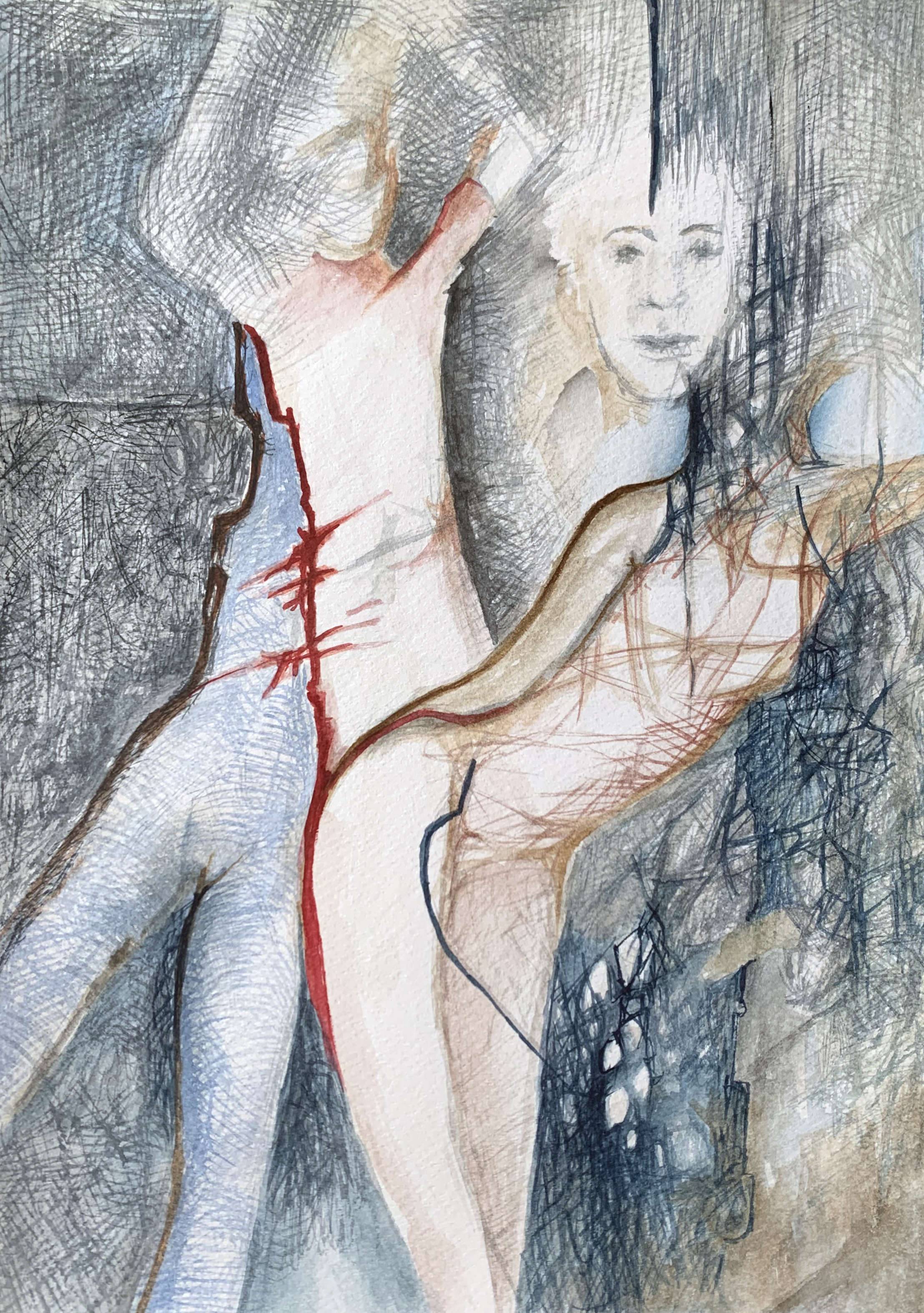 Akwarela oprawiona w passe-partout o wymiarze zewnętrznym 30 x 40 cm.