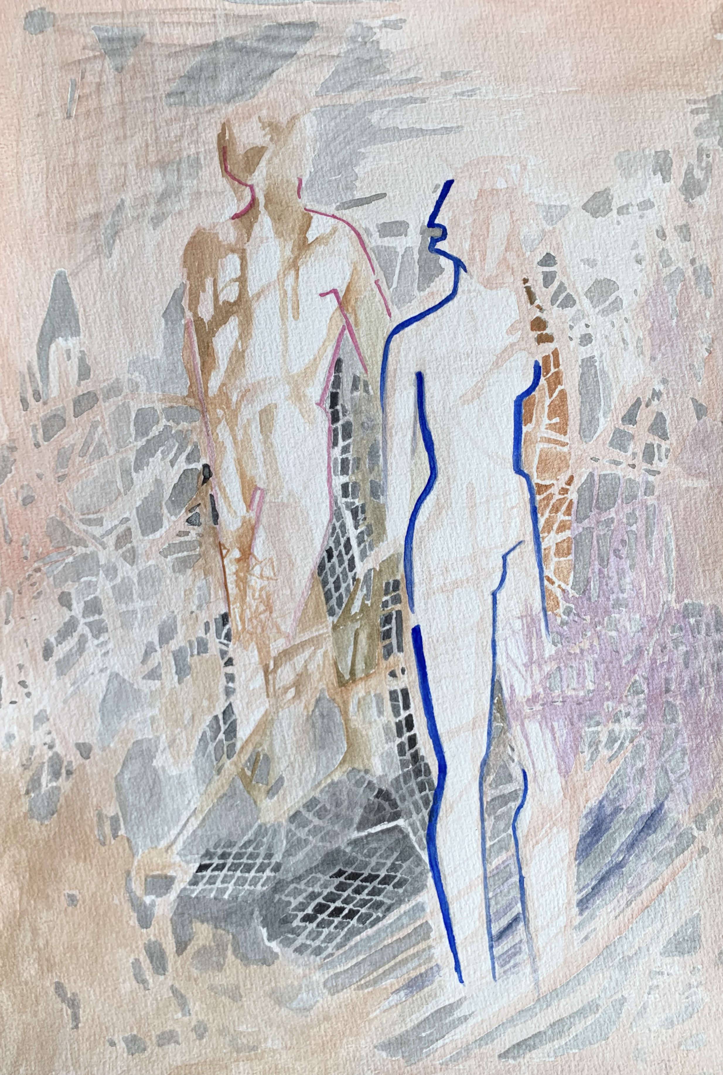 Akwarela oprawiona w passe-partout o wymiarze zewnętrznym 30 x 40 cm.