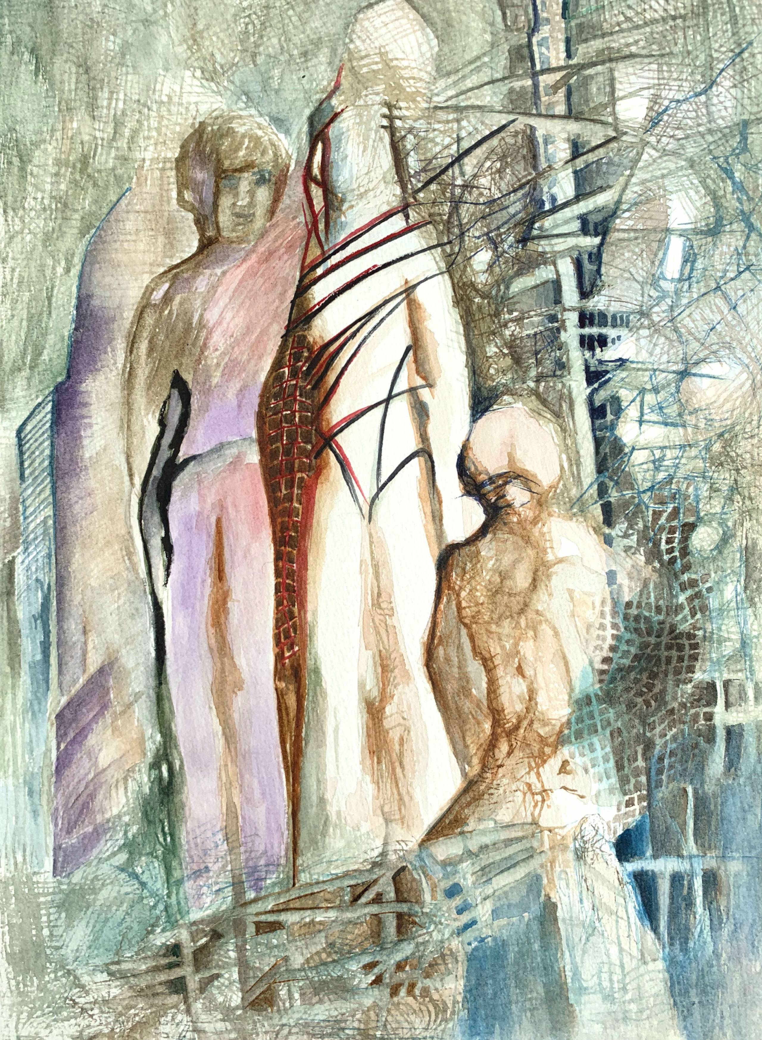 Akwarela oprawiona w passe-partout o wymiarze zewnętrznym 30 x 40 cm.
