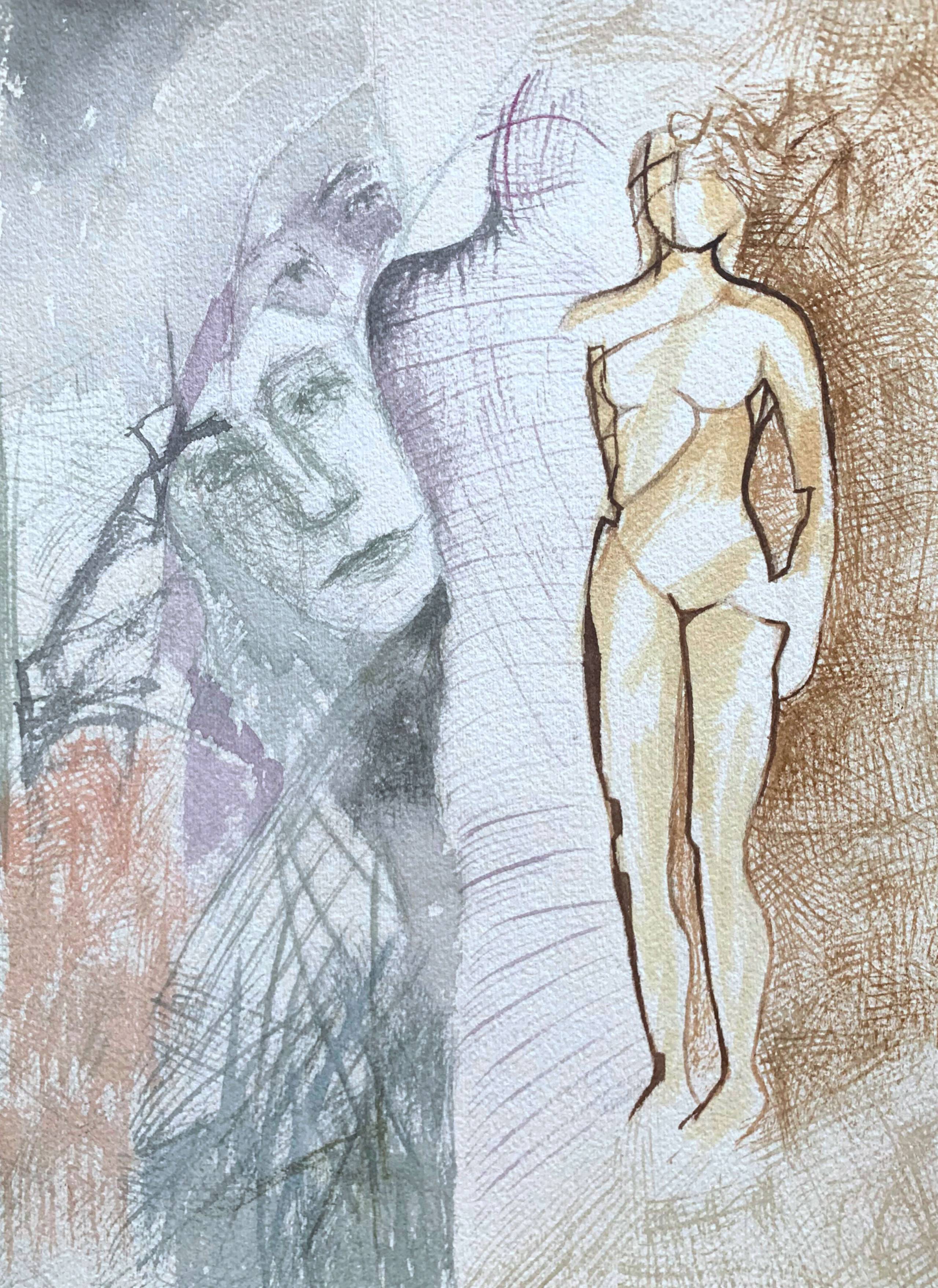 Akwarela oprawiona w passe-partout o wymiarze zewnętrznym 30 x 40 cm.