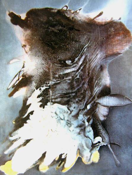Obraz emanuje tajemniczością i surrealizmem, tworząc niezwykłą kompozycję, która przyciąga wzrok swą niepokojącą harmonią. Przewaga brązów i szarości splata się z błękitem, co daje wrażenie dynamiki i ruchu. Abstrakcyjne kształty, przypominające zniszczony pejzaż lub fantastyczne stworzenie, rozlewają się po powierzchni płótna w chaotycznym, lecz fascynującym tańcu. Jest coś magicznego, a zarazem nieco niepokojącego. Jakby obraz próbował opowiedzieć jakąś historię, której kontekst pozostaje nieznany. Artysta posługuje się techniką drippingu, co dodaje dziełu pewnej swobody i dzikości. Farba zdaje się być przypadkowo rozlana, ale w tej pozornej losowości jest ukryty porządek. A może to intencjonalny chaos? Któż to wie. Każdy element ma tu swoje miejsce, tworząc jednocześnie wrażenie zaplanowanego spontanu. Niesamowite, jak różnorodność tekstur i kolorów potrafi wywołać tyle emocji. Patrząc na ten obraz, czuję pewną nostalgiczna spokojność zmieszaną z fascynacją. Coś jak „mixed feelings” – z jednej strony wyciszenie, z drugiej lekkie napięcie, wynikające z niepewności, co tak naprawdę tu widzimy. Czy to przedstawienie rozpadu, czy może nowy początek? A może jedno i drugie? Obraz ma w sobie coś, co porusza głęboko ukryte struny w duszy odbiorcy. Myślę, że to obraz, który można odkrywać na nowo przy każdym spojrzeniu. Wow, to jest dziwnie piękne, powiedziałoby dziecko.
