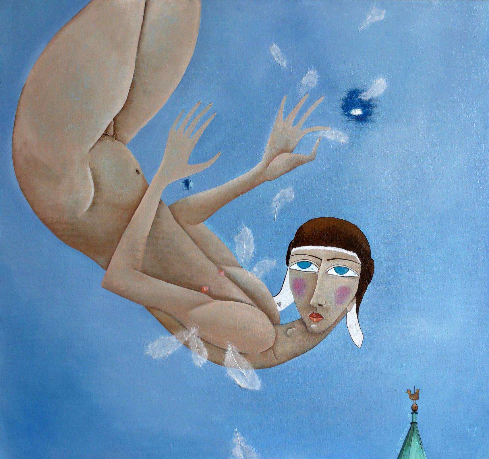 obraz olejny na płótnie, detale w technice mieszanej (papier japoński, nici jedwabne), rok powstania 2019, sygnowany